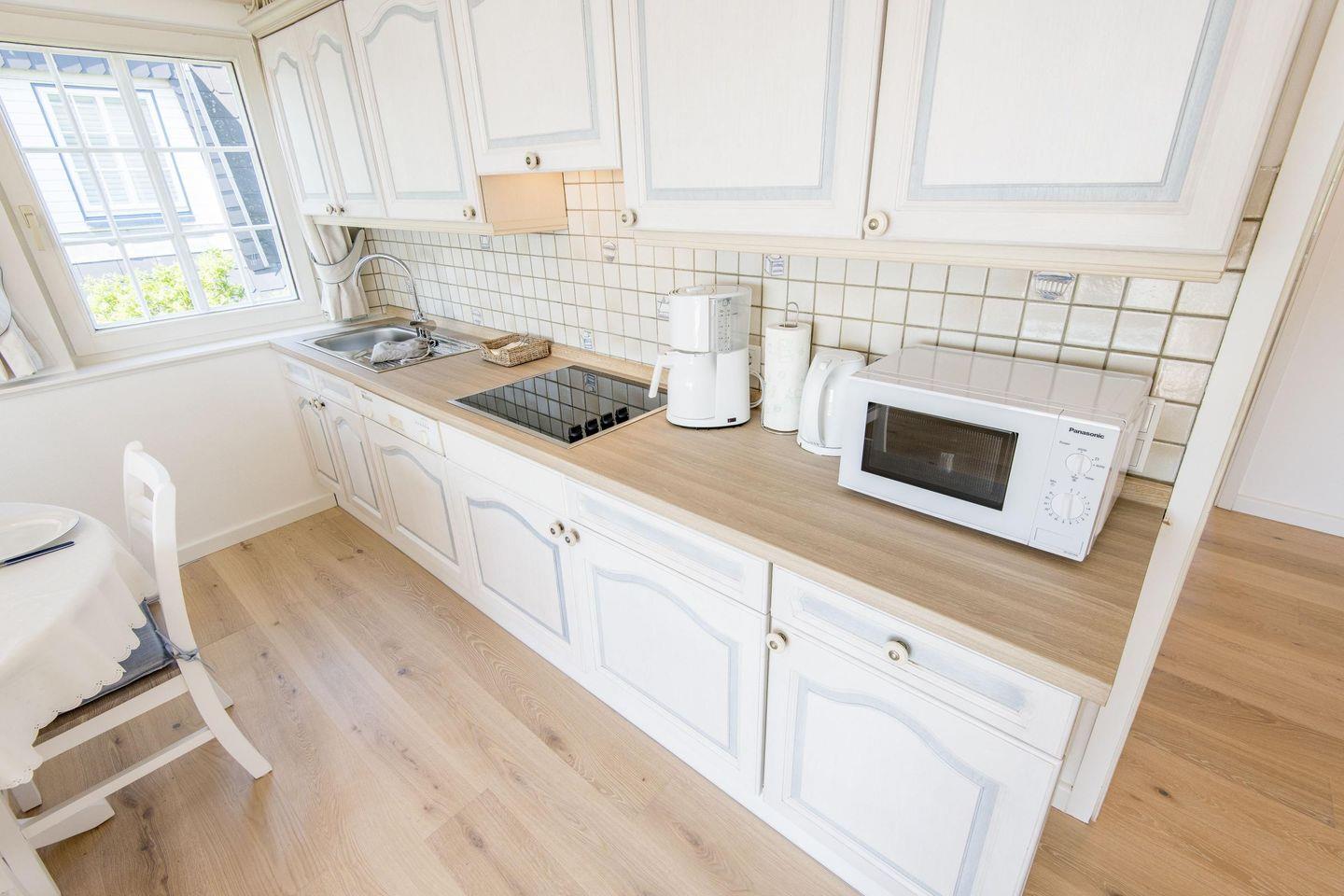 Die moderne, offene Küche bietet eine hochwertige Ausstattung und lässt keine Wünsche offen. Mit Filterkaffeemaschine, Geschirrspüler und Waschmaschine ist alles vorhanden, um den Aufenthalt so komfortabel wie möglich zu gestalten. Die Küche lädt dazu ein, eigene kulinarische Kreationen zu zaubern und die gemeinsame Zeit in vollen Zügen zu genießen.