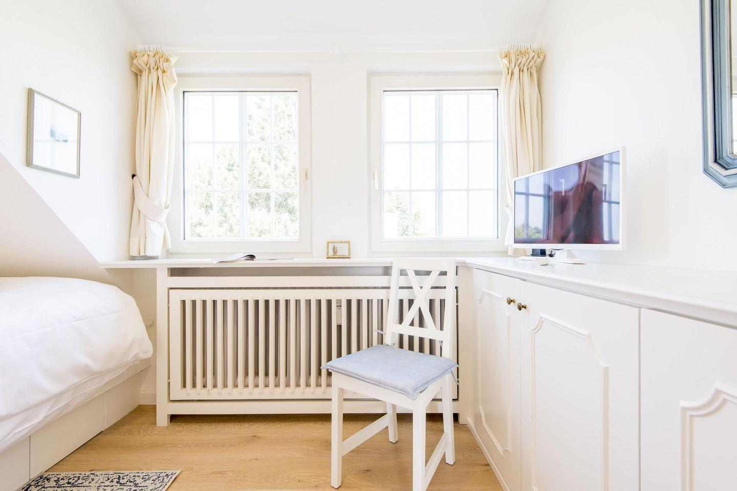 In den beiden Schlafzimmern ist für erholsame Nächte bestens gesorgt. Das erste Schlafzimmer verfügt über ein komfortables Doppelbett (2x 90x200 cm), einen Kleiderschrank und einen TV. Das zweite Schlafzimmer, ebenfalls mit einem Doppelbett (2x 90x200 cm) und praktischen Einbauschränken ausgestattet, bietet zusätzlichen Komfort und Gemütlichkeit.