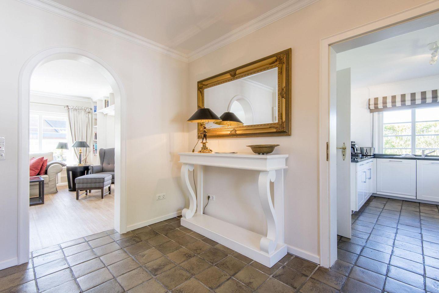 Die voll ausgestattete Küche ist hochwertig eingerichtet und verfügt über einen 4-flammigen Herd, Geschirrspüler und zusätzlichen Komfort durch eine Durchreiche zum Esszimmer. Eine Nespresso-Maschine von DeLonghi und eine Filterkaffeemaschine sorgen für Kaffeegenuss nach Wunsch.