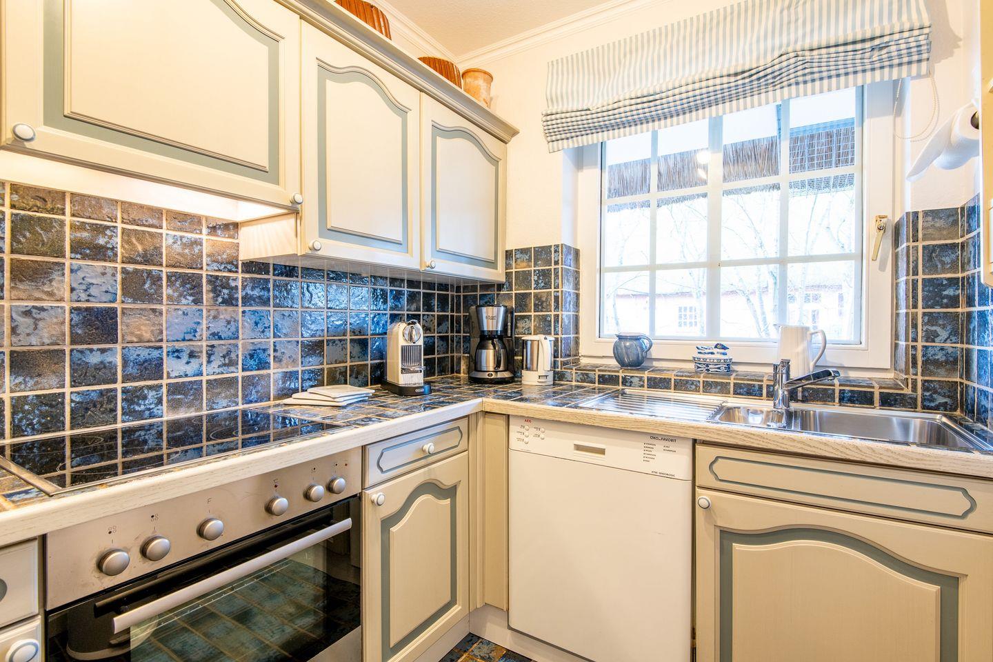 Die Küche ist separat gehalten und hochwertig ausgestattet. Ein Cerankochfeld, Backofen, Geschirrspüler und eine Filter-Kaffeemaschine bieten alles, was Sie zur Zubereitung Ihrer Lieblingsgerichte benötigen.