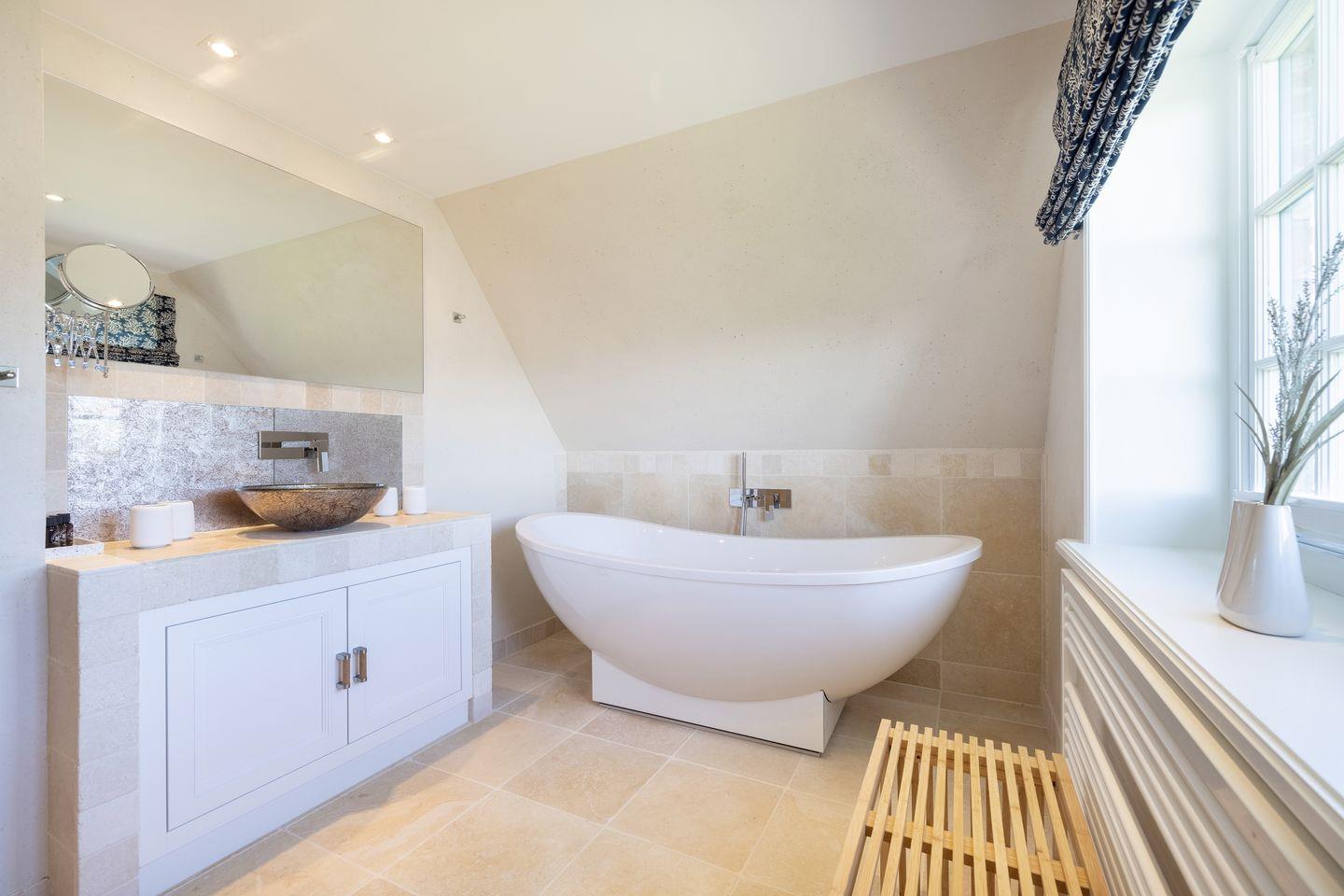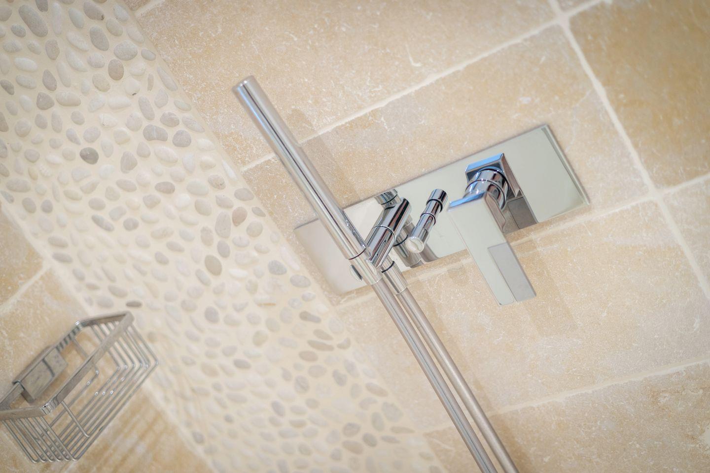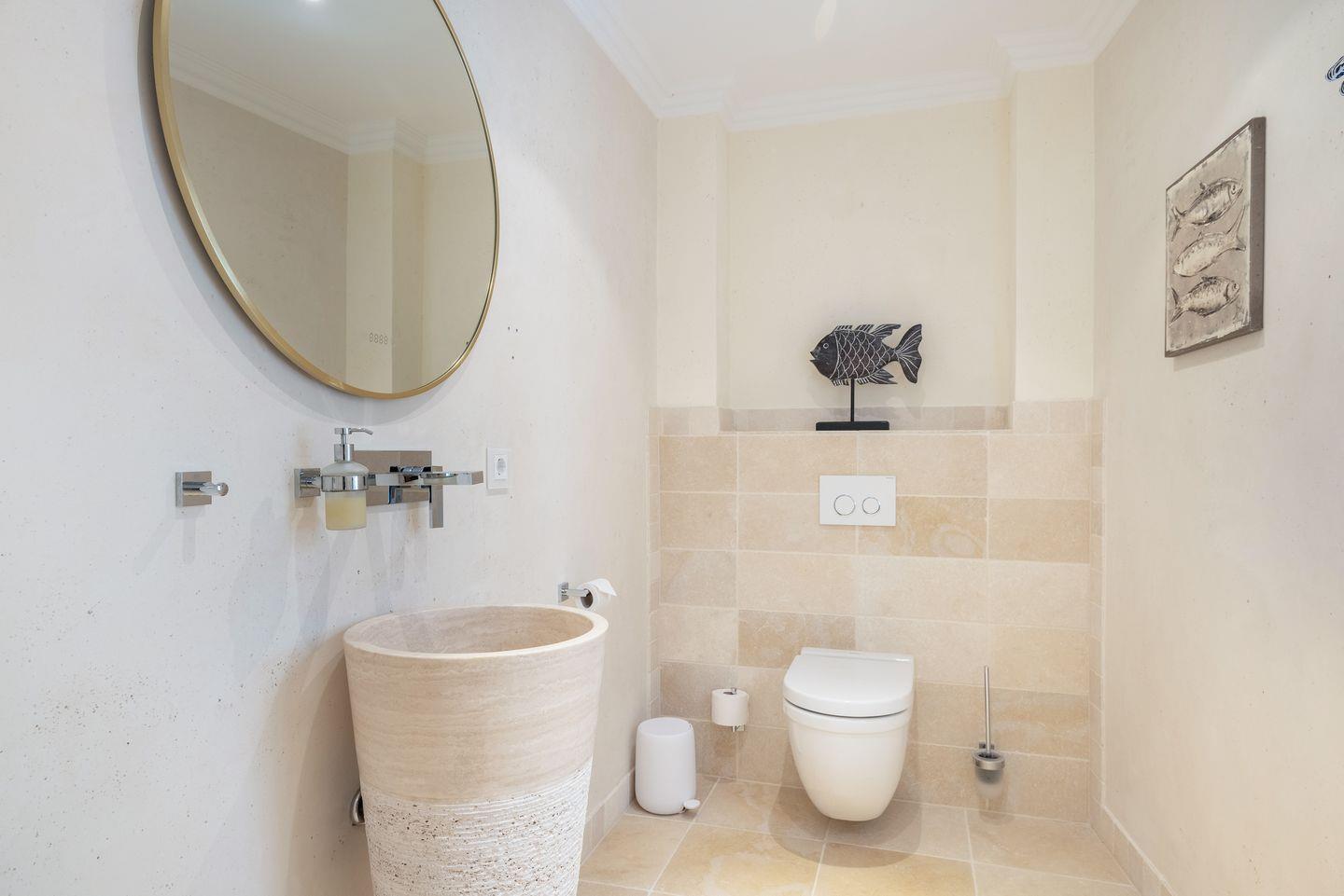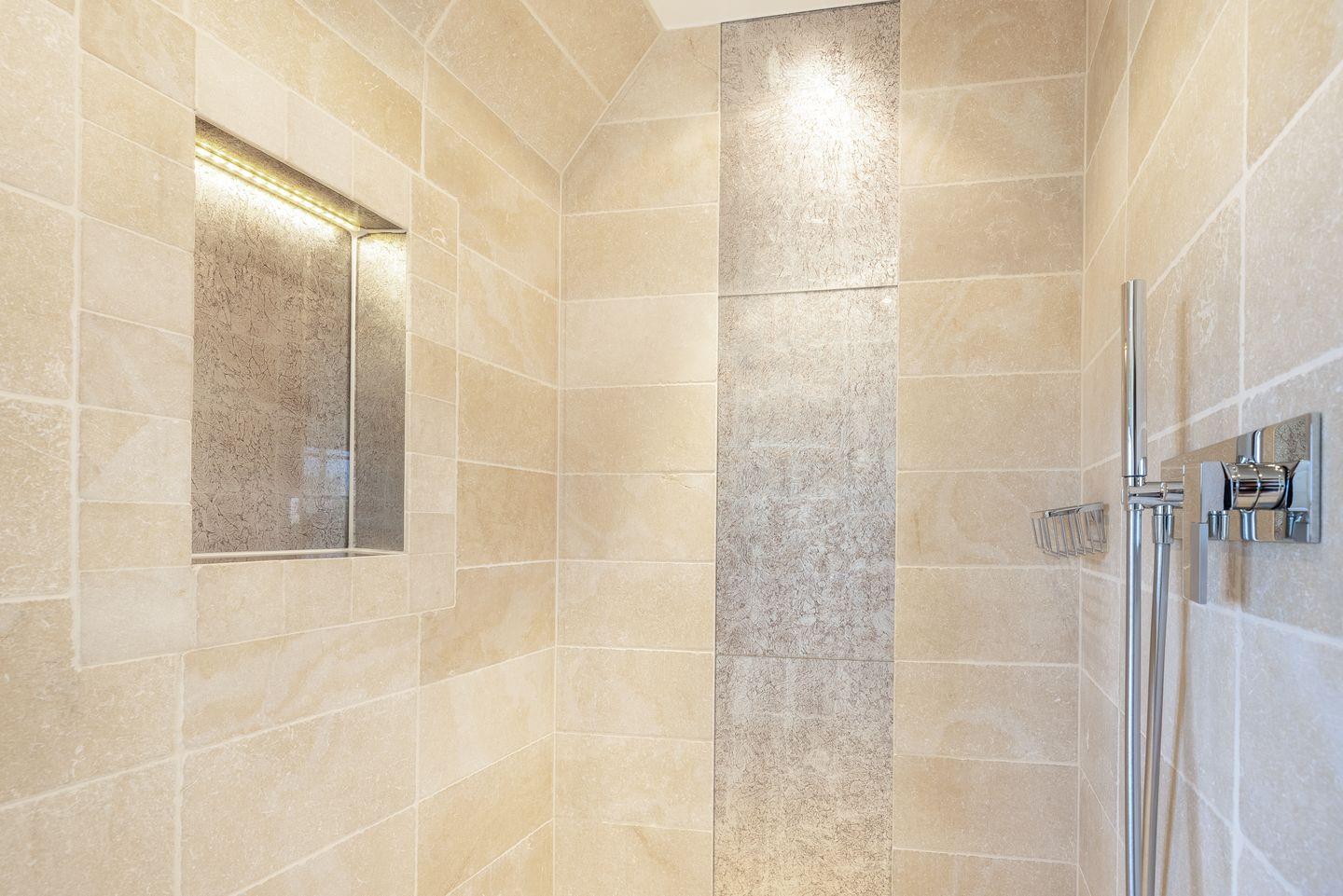 Die beiden luxuriösen Badezimmer vervollständigen das Wohlfühlambiente: Das Bad im OG verfügt über eine Badewanne und eine separate Regendusche, ideal für ein entspanntes Morgen- oder Abendritual. Das zweite Badezimmer im Wellnessbereich bietet eine ebenerdige Regendusche, ein separates WC und ist ebenfalls hochwertig eingerichtet. Ein zusätzliches Gäste-WC im Eingangsbereich sorgt für noch mehr Komfort.