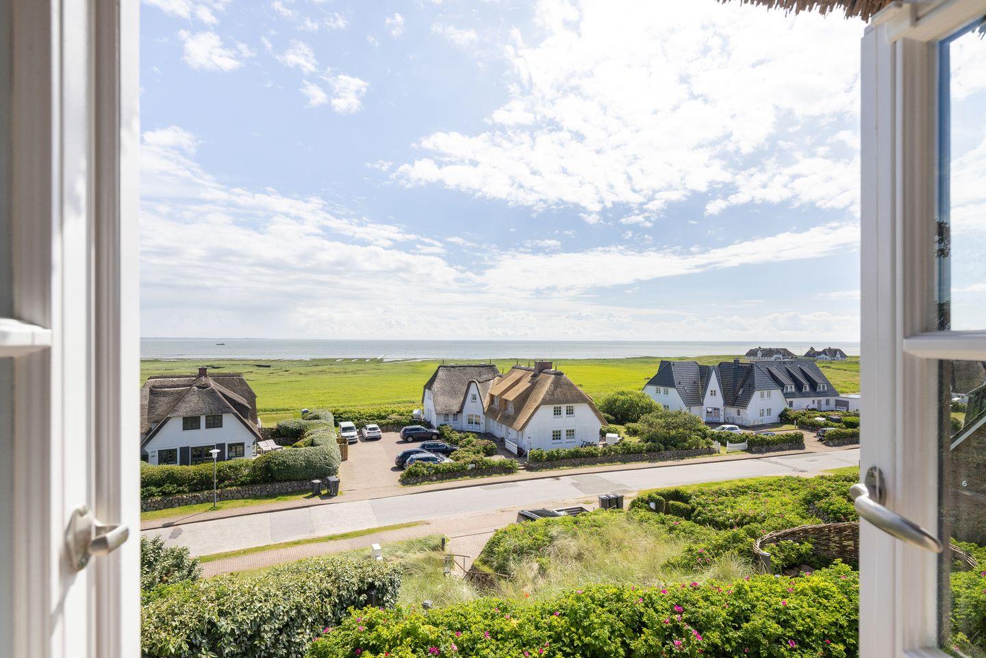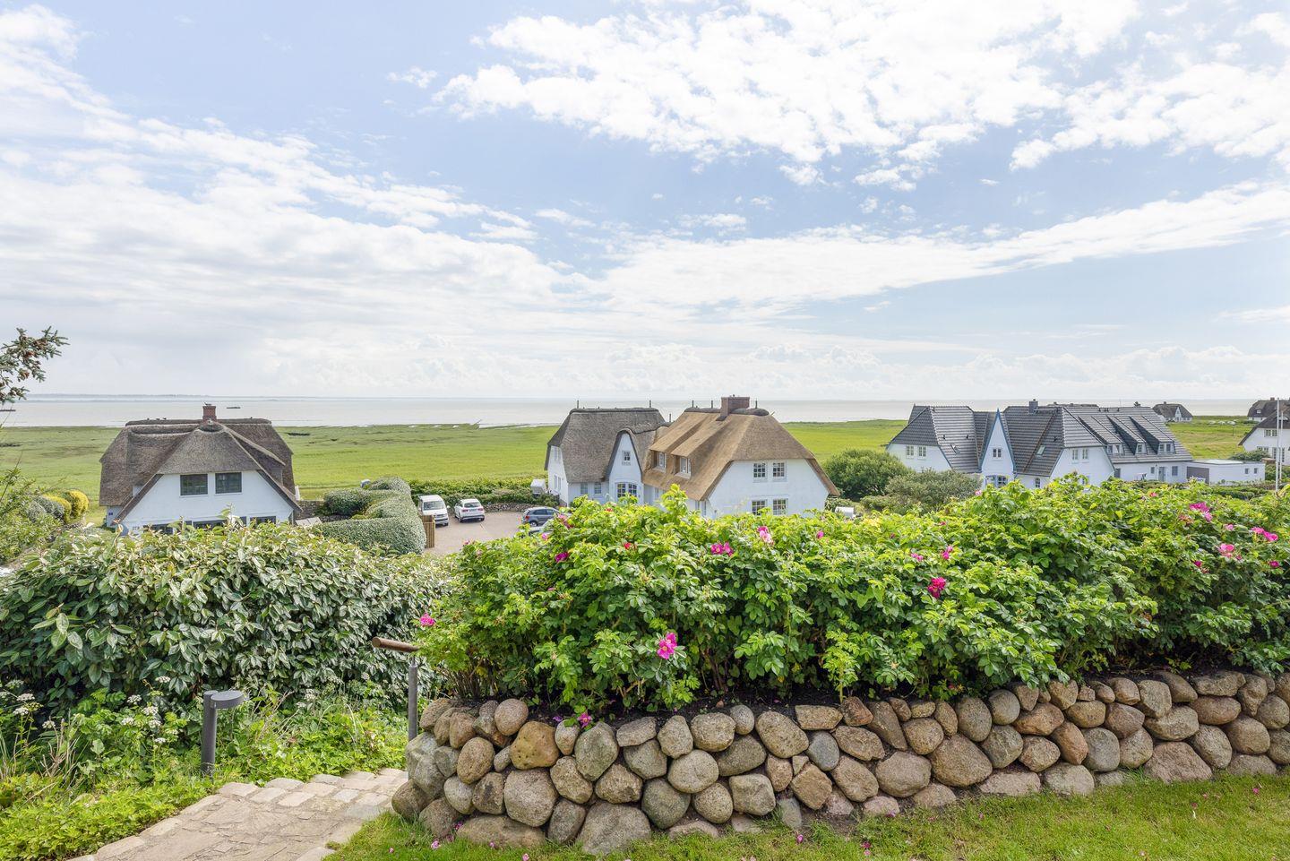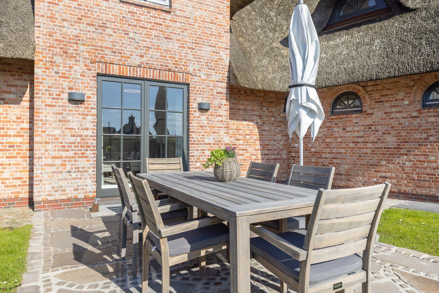 Dieses Reetdach-Hideaway in Rantum bietet auf rund 208 m² über drei Ebenen Platz für bis zu vier Personen. Es ist der ideale Ort für einen unvergesslichen Urlaub mit Familie oder Freunden. Die stilvolle Ausstattung und der beeindruckende Blick auf das Wattenmeer sorgen für eine außergewöhnliche Atmosphäre. Die hochwertige Küche, ausgestattet mit Weinkühlschrank, lädt zur Zubereitung kulinarischer Highlights ein. Vom großzügigen Essbereich aus gelangen Sie direkt auf die Ostterrasse, wo Sie bei beeindruckendem Panorama gemütliche Stunden verbringen können. Das Wohnzimmer mit Kamin und Terrasse nach Westen schafft den perfekten Rückzugsort für entspannte Abende.
