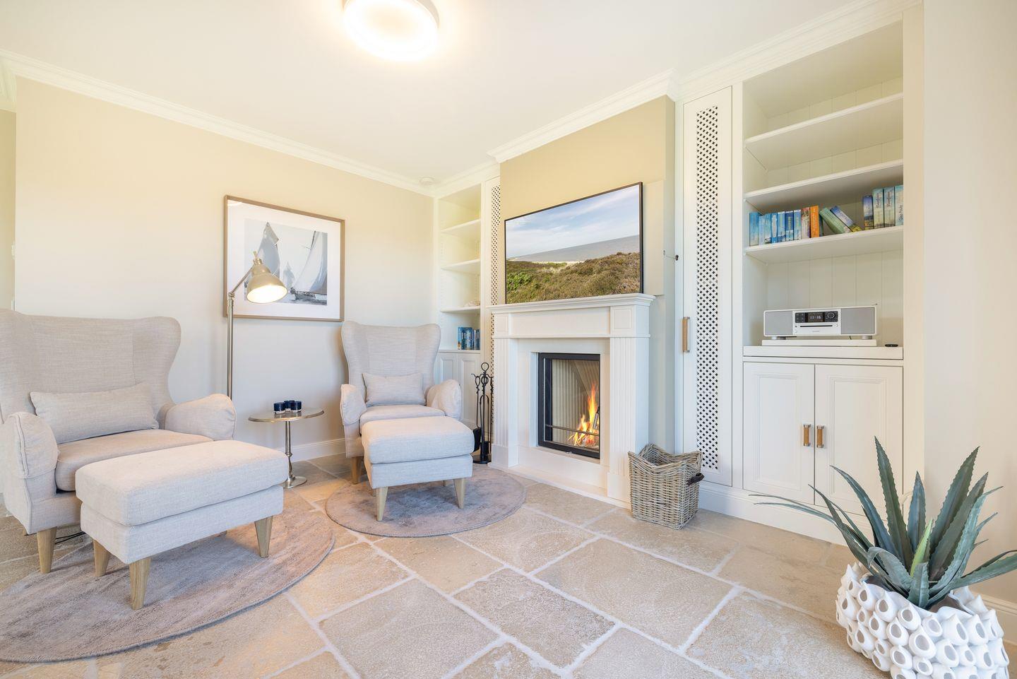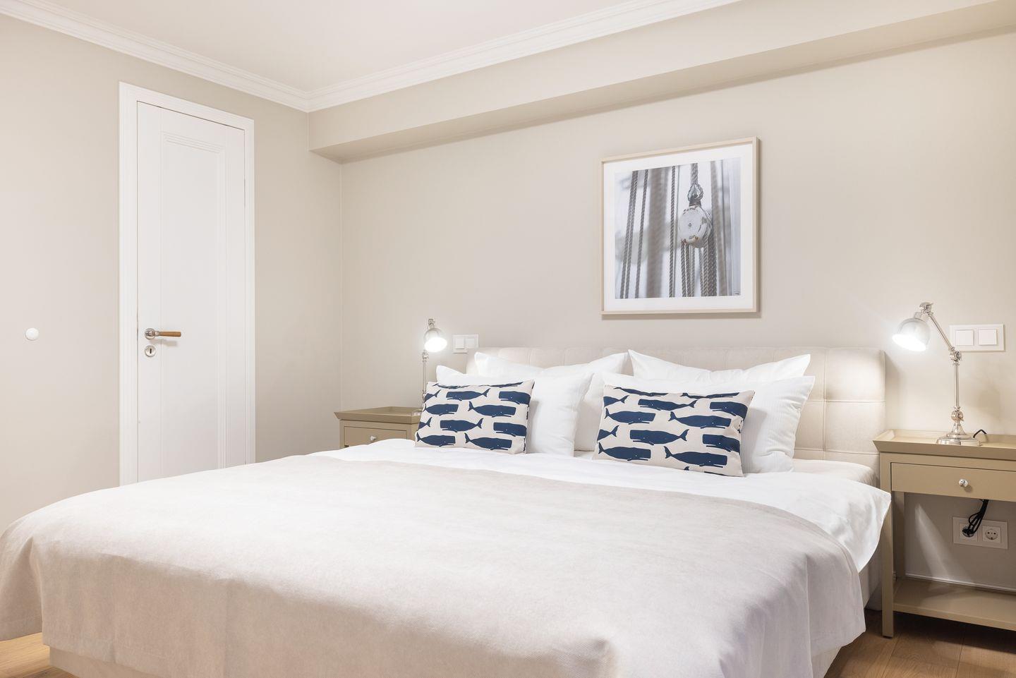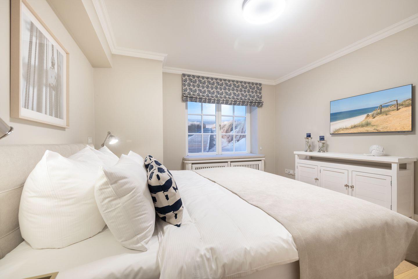 Die großzügigen Schlafzimmer sind mit hochwertigen Doppelbetten und TV ausgestattet und bieten maximalen Komfort. Das Hauptschlafzimmer mit Blick nach Osten lässt Sie den Morgen mit dem wunderschönen Wattenmeerblick begrüßen. Hochwertige Holzeinbauten unterstreichen den luxuriösen Charakter der geschmackvollen Einrichtung.