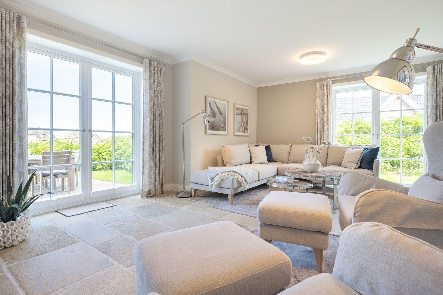 Sollten Sie mit mehr als vier Personen reisen, können Sie das benachbarte Hausteil „Wattgeflüster 4“ dazu buchen. Über eine Verbindungstür im Untergeschoss lassen sich die Hausteile zu einer geräumigen Einheit kombinieren – perfekt für Familien oder Freundesgruppen, die gemeinsam Sylt erleben möchten.
