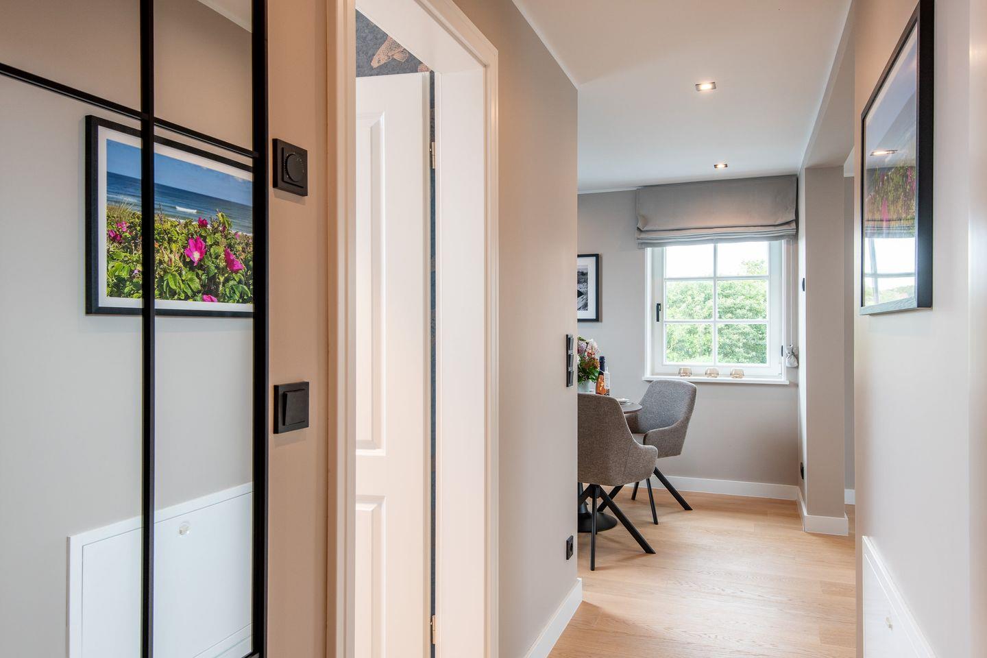 Das separate Schlafzimmer mit einem bequemen Boxspringbett garantiert erholsame Nächte. Die ruhige Atmosphäre sorgt für Entspannung nach einem Tag voller Inselerlebnisse. Für Ihre Kleidung steht Ihnen ein Einbauschrank im Nebenraum zur Verfügung.