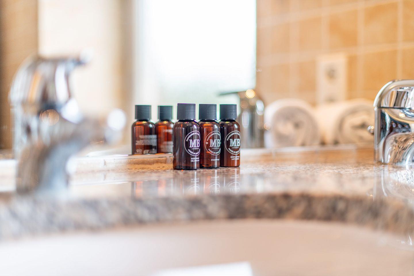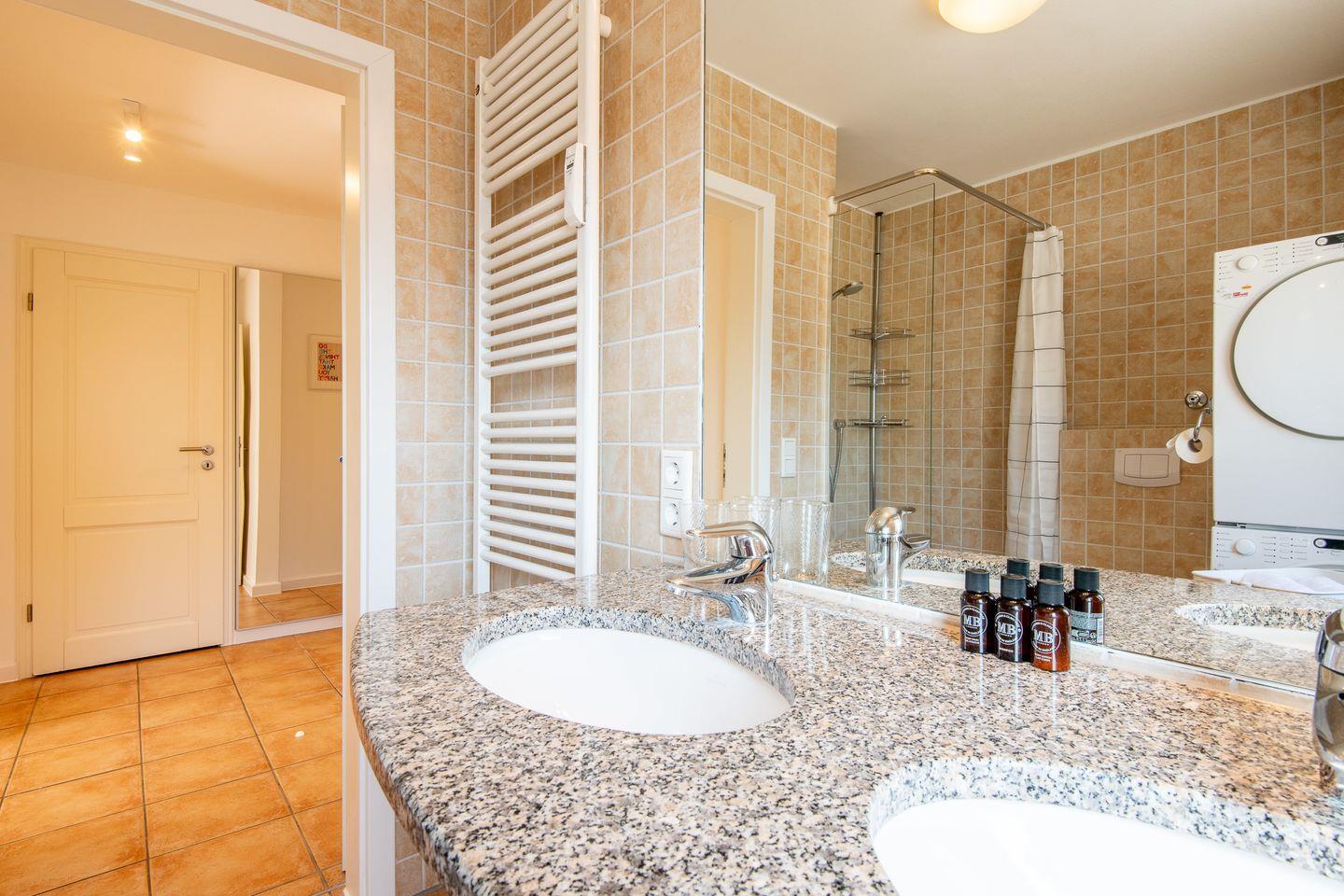 Das Badezimmer verfügt über eine moderne Dusche – perfekt, um erfrischt in den Tag zu starten oder um nach einem langen Tag am Meer neue Energie zu tanken.