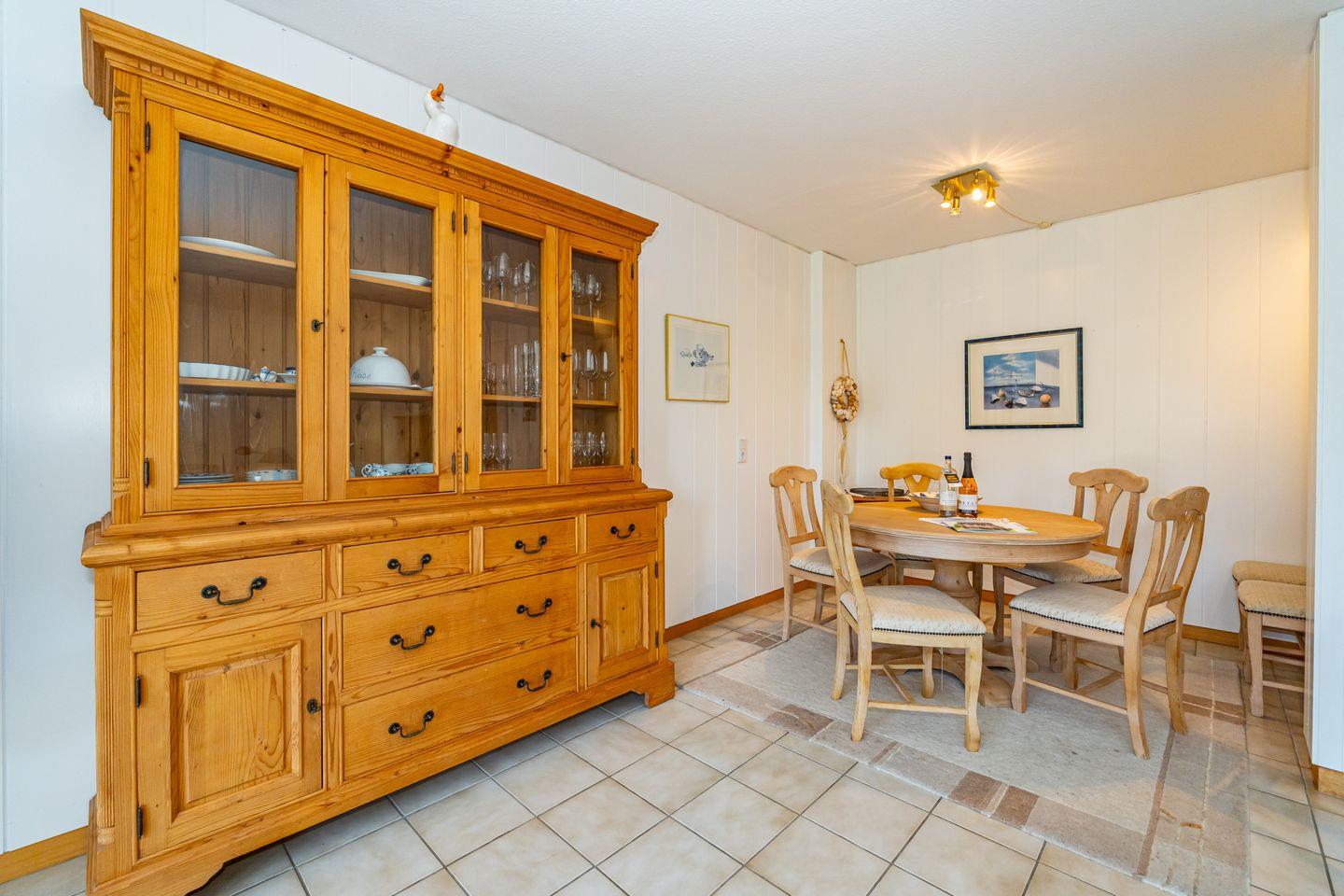 Die Ferienwohnung Rüm hart erstreckt sich über zwei Etagen auf 110qm. Der offene, einladende Wohnbereich ist mit zwei Sofas und einem Sessel, einem Essbereich und einem TV ausgestattet. Von hier aus haben Sie Zutritt zur Terrasse mit Gartenmöbeln (saisonal). Die geschlossene Küche lässt keine Wünsche offen. Sie ist ausgestattet mit einem Ceranherd, Backofen, Kühlschrank mit Gefrierfach, Geschirrspüler, Kaffeefiltermaschine, Wasserkocher, Toaster einem Esstisch. Ebenfalls im Erdgeschoss befindet sich ein Badezimmer mit WC, Waschbecken und Badewanne. Über eine Treppe gelangen Sie ins Souterrain wo sich zwei Schlafzimmer befinden. Das eine Schlafzimmer verfügt über 3 Schlafplätze (1 Doppelbett und 1 Einzelbett), TV und Kleiderschrank und das andere Schlafzimmer verfügt über 2 Schlafplätze (1 Doppelbett) und Kleiderschrank. Auf dieser Ebene befindet sich ein Badezimmer mit WC, Waschbecken und Dusche. Für längere Aufenthalte oder bei Bedarf nutzen Sie die gemeinschaftlich zugängliche Waschmaschine und den Trockner. Zu der Wohnung gehört ein PKW-Stellplatz.