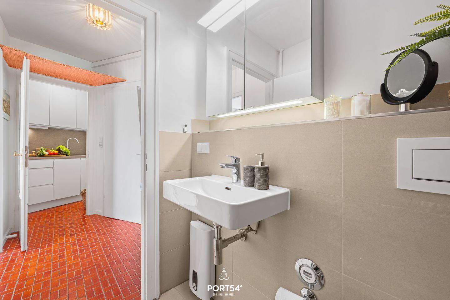 Der Wohnbereich ist mit einem Sofa mit Schlaffunktion (140x200 cm), einem Esstisch mit Stühlen, einem digitalen TV-Anschluss und einem Fernseher ausgestattet, sodass du auch bei schlechtem Wetter angenehme Stunden in der Wohnung verbringen kannst. Alle Fenster sind mit Plissees versehen, um dir Privatsphäre zu gewährleisten.