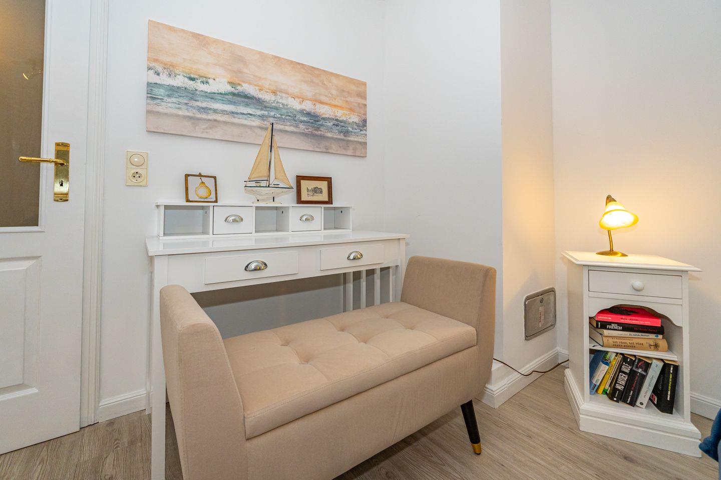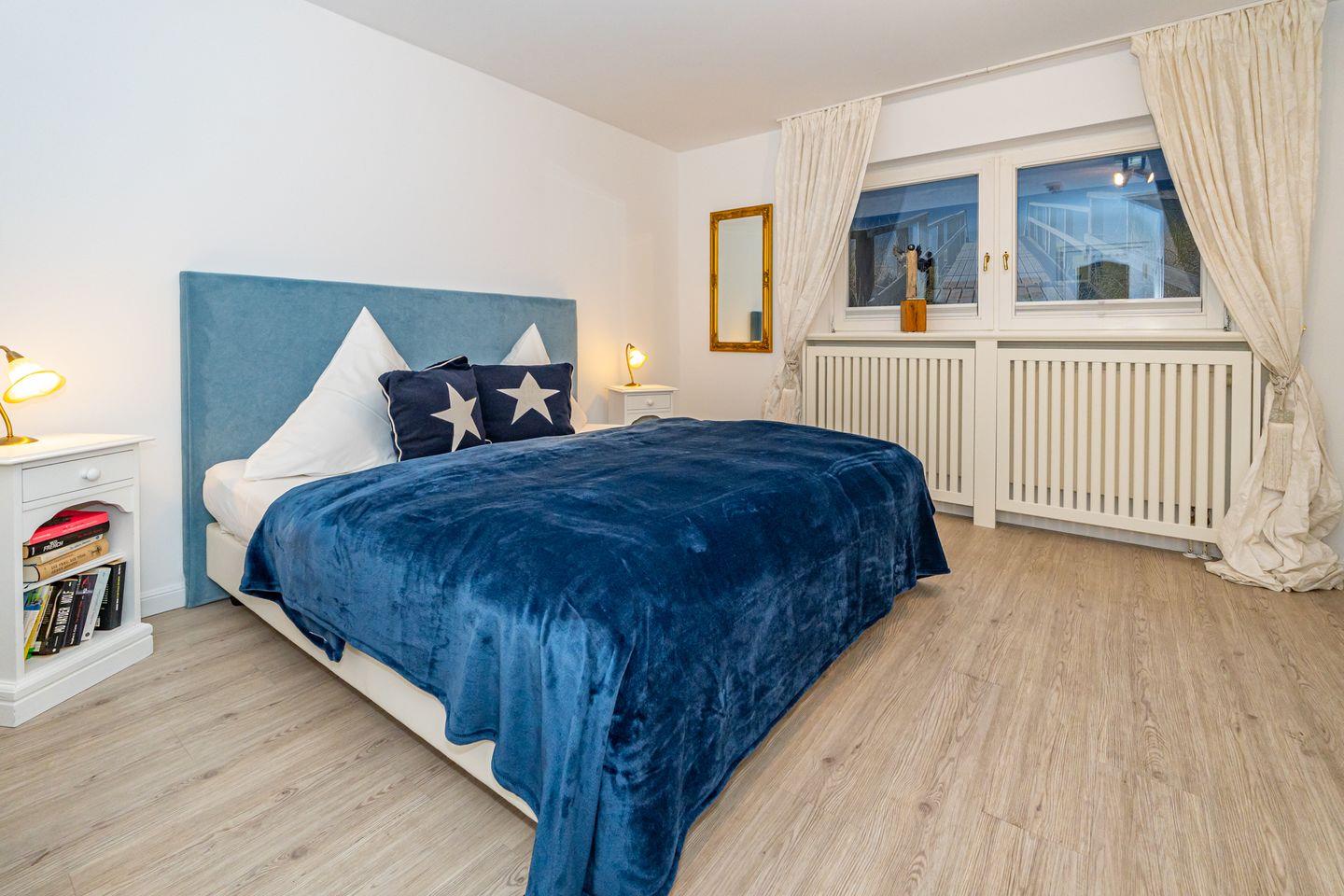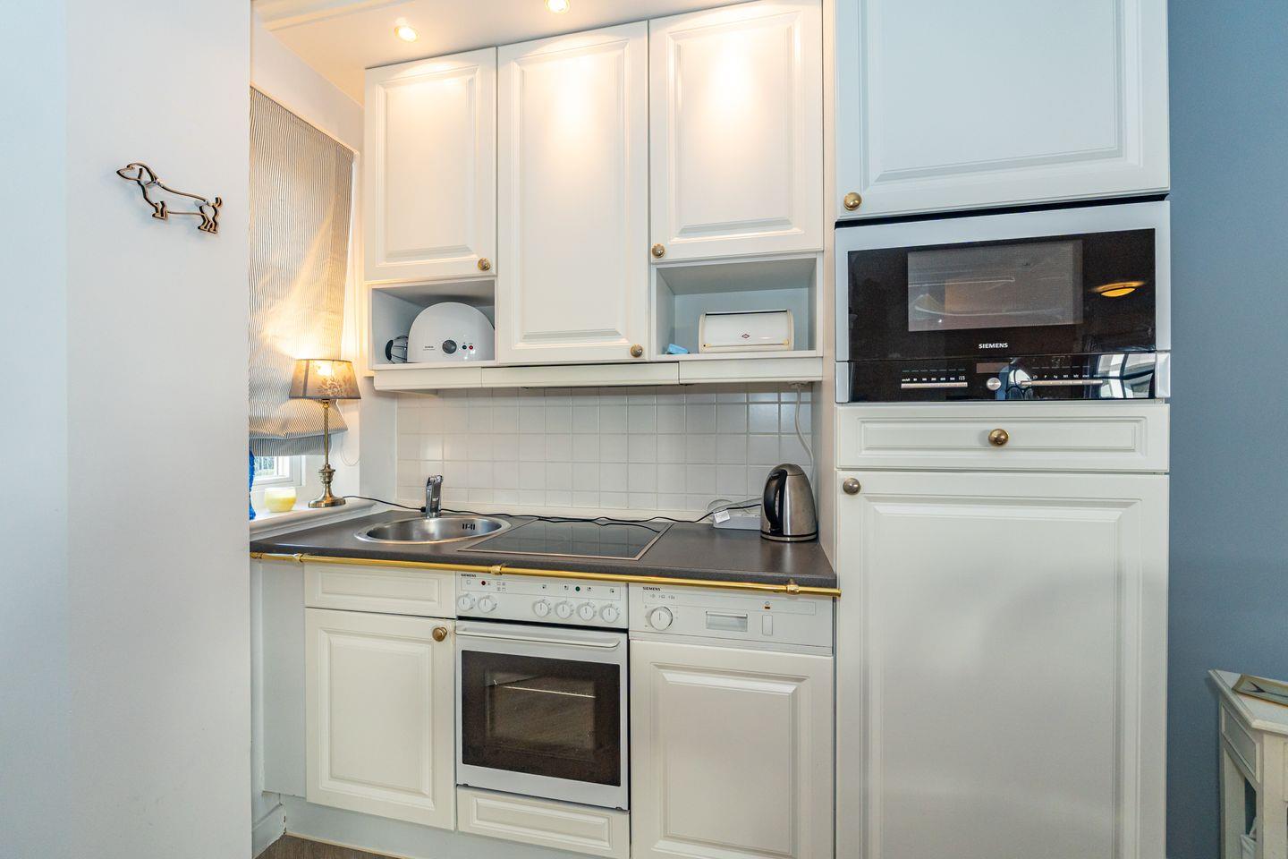 Diese komfortable, neu sanierte Ferienwohnung unter Reet, ist zentral in Westerland gelegen und befindet sich im bekannten Altstadttor. Die Ferienwohnung erstreckt sich über zwei Ebenen. Im Erdgeschoss befindet sich der Wohn- und Essbereich, ausgestattet mit TV, einem gemütlichen Sofa und einem Essplatz. Die offene Küche lässt keine Wünsche offen: Backofen, Cerankochfeld, Mikrowelle, Spülmaschine, Nespresso Maschine, Toaster, Wasserkocher und Kühlschrank gehören zur Ausstattung. Vom Wohn- und Essbereich haben Sie Zutritt zur Terrasse mit Gartenmöbeln und typischen Sylter Strandkorb (saisonal). Über eine Treppe gelangen Sie ins Souterrain, dort befindet sich ein geräumiges Schlafzimmer mit komfortablem Doppelbett und Kleiderschrank. Ebenfalls auf dieser Ebene befindet sich das Badezimmer mit bodengleicher Dusche, Waschbecken und WC. In der Ferienwohnung befindet sich ein Waschtrockner zur Eigennutzung. Am Haus steht Ihnen ein PKW Stellplatz kostenfrei zur Verfügung.