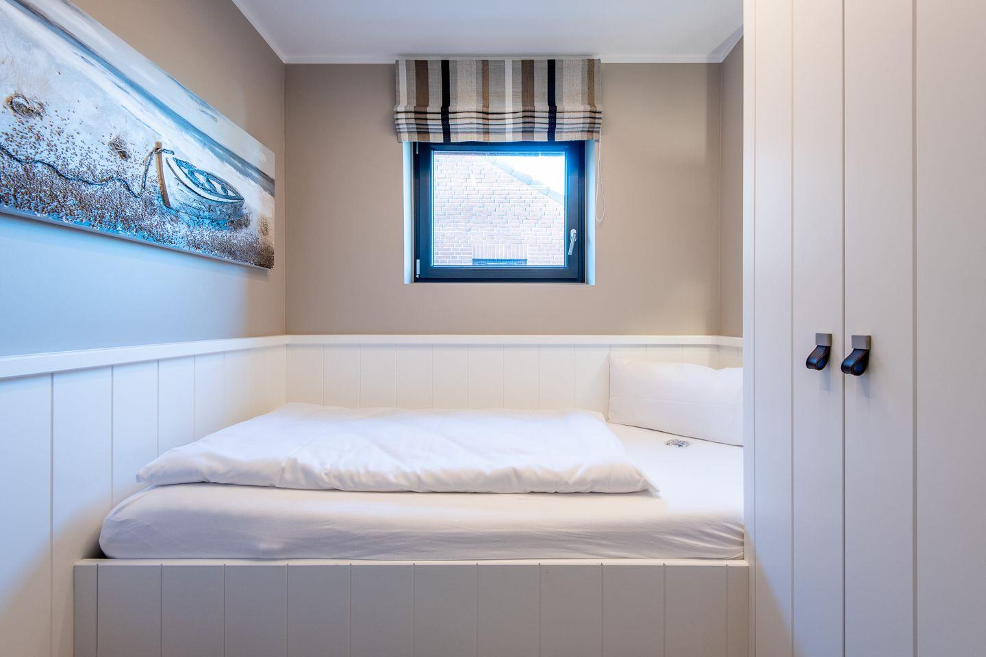 Das Hauptschlafzimmer ist mit einem hochwertigen Doppelbett (160x200 cm) sowie großzügigen, maßgefertigten Einbauschränken ausgestattet. Ein separates Einzelzimmer mit einem komfortablen Einbaubett (100x200 cm) bietet zusätzlichen Platz – ideal für ein Kind oder eine weitere Begleitperson. Hochwertige Tischlereinbauten sorgen in beiden Zimmern für ein durchdachtes Raumgefühl mit viel Stauraum.