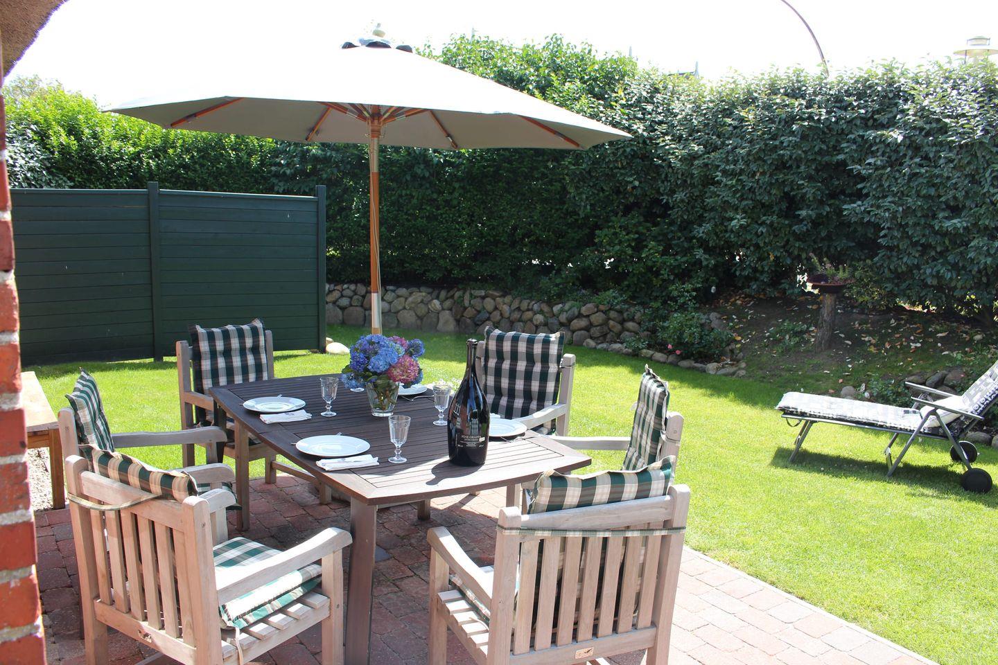 Ein besonderes Highlight des Belle Hues ist der großzügige Garten mit sonniger Südwest-Terrasse, Gartenmöbeln und eigenem Strandkorb. Hier können Sie den Tag bei frischer Nordseeluft beginnen, nach einem Strandspaziergang entspannen oder den Abend in ruhiger Atmosphäre ausklingen lassen. Die grüne Umgebung und die Nähe zum Südwäldchen schaffen eine angenehm ruhige Wohnlage, während das Zentrum von Westerland mit Restaurants, Cafés, Einkaufsmöglichkeiten und Promenade bequem erreichbar ist.