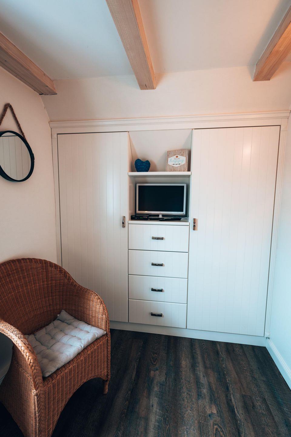 Im Obergeschoss befinden sich zwei komfortable Schlafzimmer mit hochwertigen Betten, die erholsame Nächte garantieren. Zwei moderne Badezimmer bieten zusätzlichen Komfort und Privatsphäre – besonders angenehm bei einem Aufenthalt mit mehreren Gästen. Fußbodenheizung im gesamten Haus, WLAN, Smart-TV sowie Waschtrockner sorgen dafür, dass es Ihnen auch bei längeren Aufenthalten an nichts fehlt.