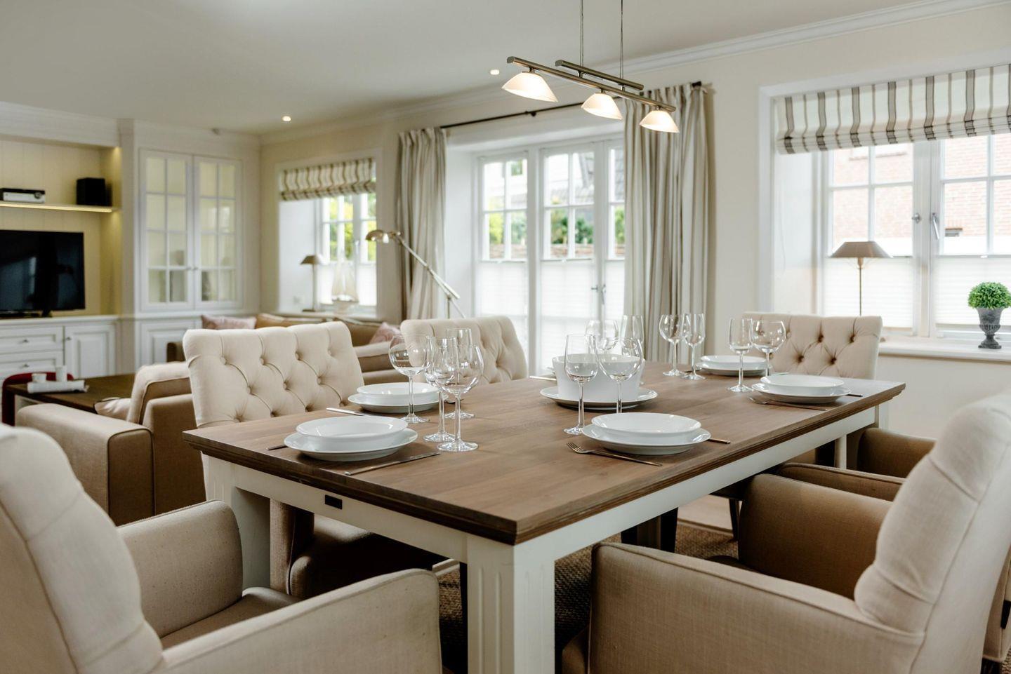 Diese exklusive Doppelhaushälfte unter Reet besticht durch eine gute Raumaufteilung und hochwertige Materialien. Gekonnt werden die Tischlereinbauten und die ausgewählten Bodenbeläge in Szene gesetzt. Ein helles, warmes Farbkonzept sorgt für eine sehr harmonische und gemütliche Atmosphäre. Gönnen Sie sich besonders in der kuscheligen Jahreszeit nach einem Strandspaziergang Entspannung in der Sauna und lassen einen gelungenen Tag vor dem Kamin ausklingen.