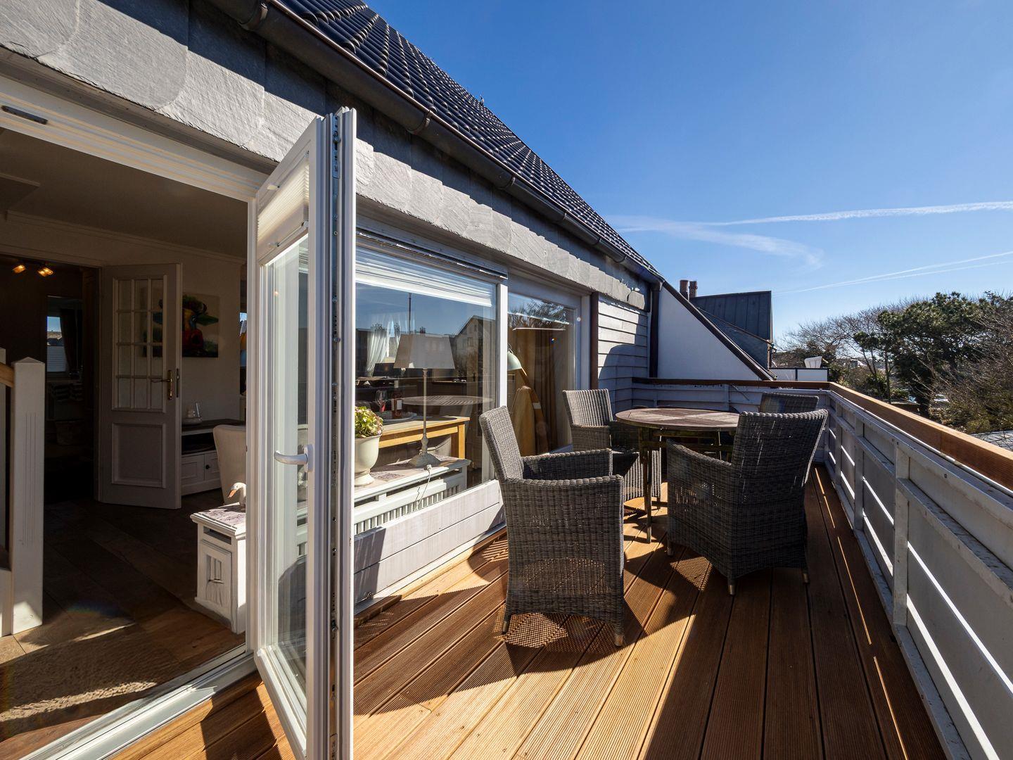 Herzlich willkommen in diesem stilvollen Appartement in Wenningstedt, das Platz für bis zu 3 Personen bietet und förmlich zu einem erholsamen Urlaub auf Sylt einlädt. Die großzügige 85 qm Wohnung erstreckt sich über zwei Ebenen und beeindruckt mit einem großem 8 qm Südbalkon, ausgestattet mit Gartenmöbeln und einem Strandkorb.