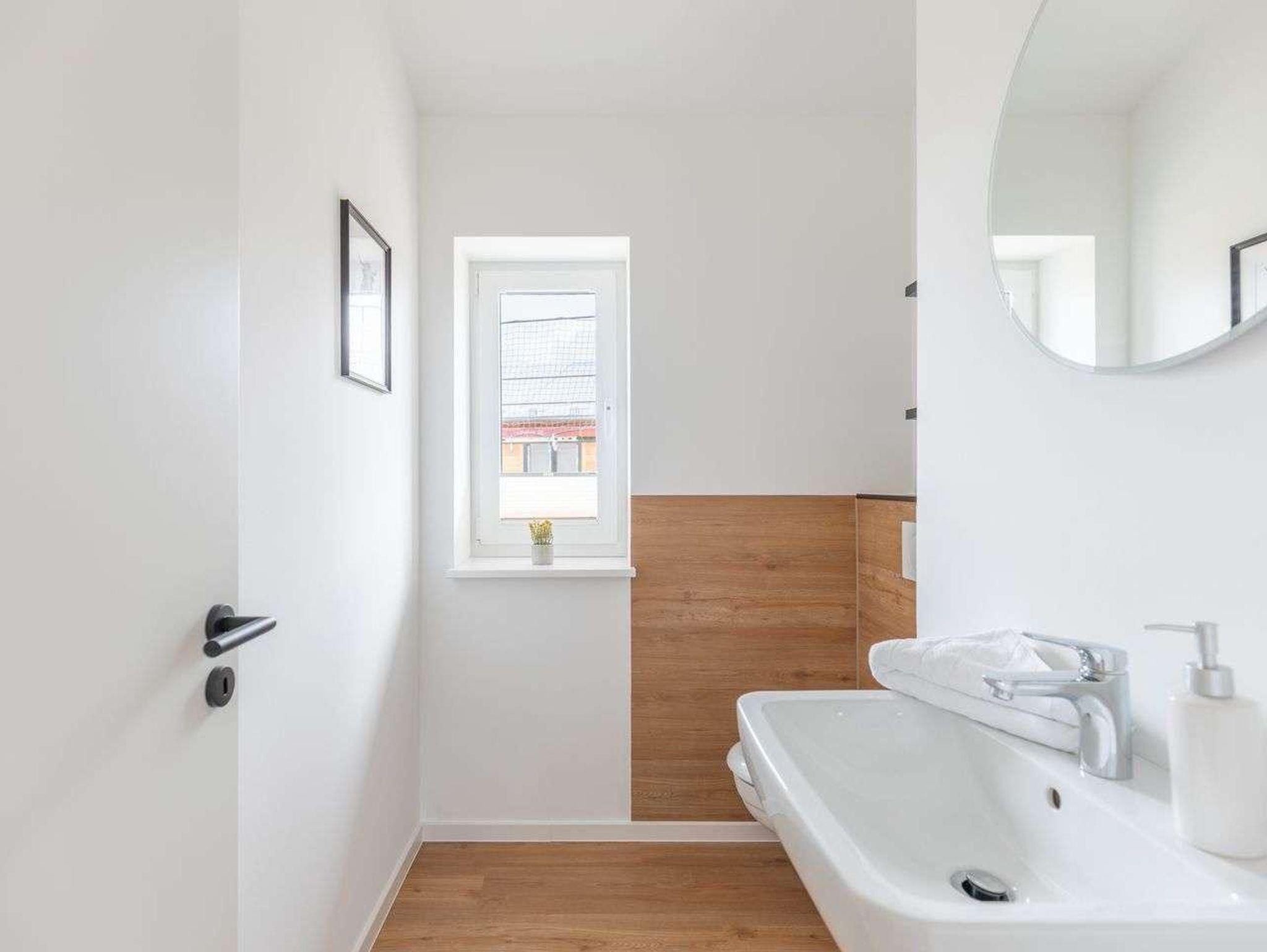 Ein modernes Badezimmer mit bodengleicher Dusche, WC und Sauna sowie ein zusätzliches Gäste-WC sorgen für besonderen Komfort.