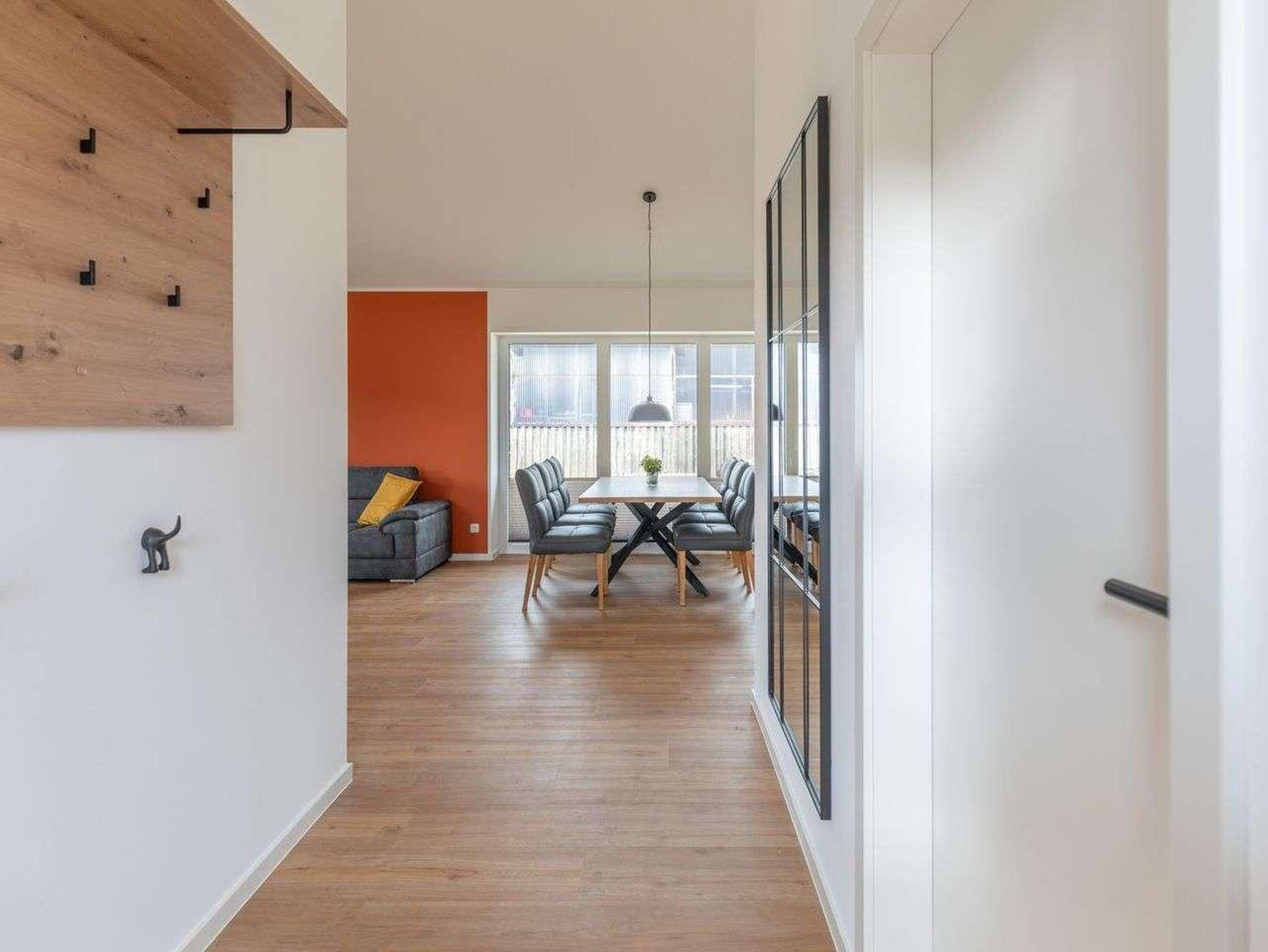 Die offene Küche ist voll ausgestattet mit Induktionskochfeld, Backofen, Mikrowelle, Spülmaschine, Senseo-Kaffeemaschine und Kühlschrank mit Gefrierfach – perfekt für gemeinsame Kochabende. Im gemütlichen Wohnbereich laden eine Sofaecke und ein SMART-Fernseher zum Verweilen ein. Kostenloses, schnelles WLAN hält Sie jederzeit online. Der angrenzende Essbereich bietet ausreichend Platz für alle Gäste.