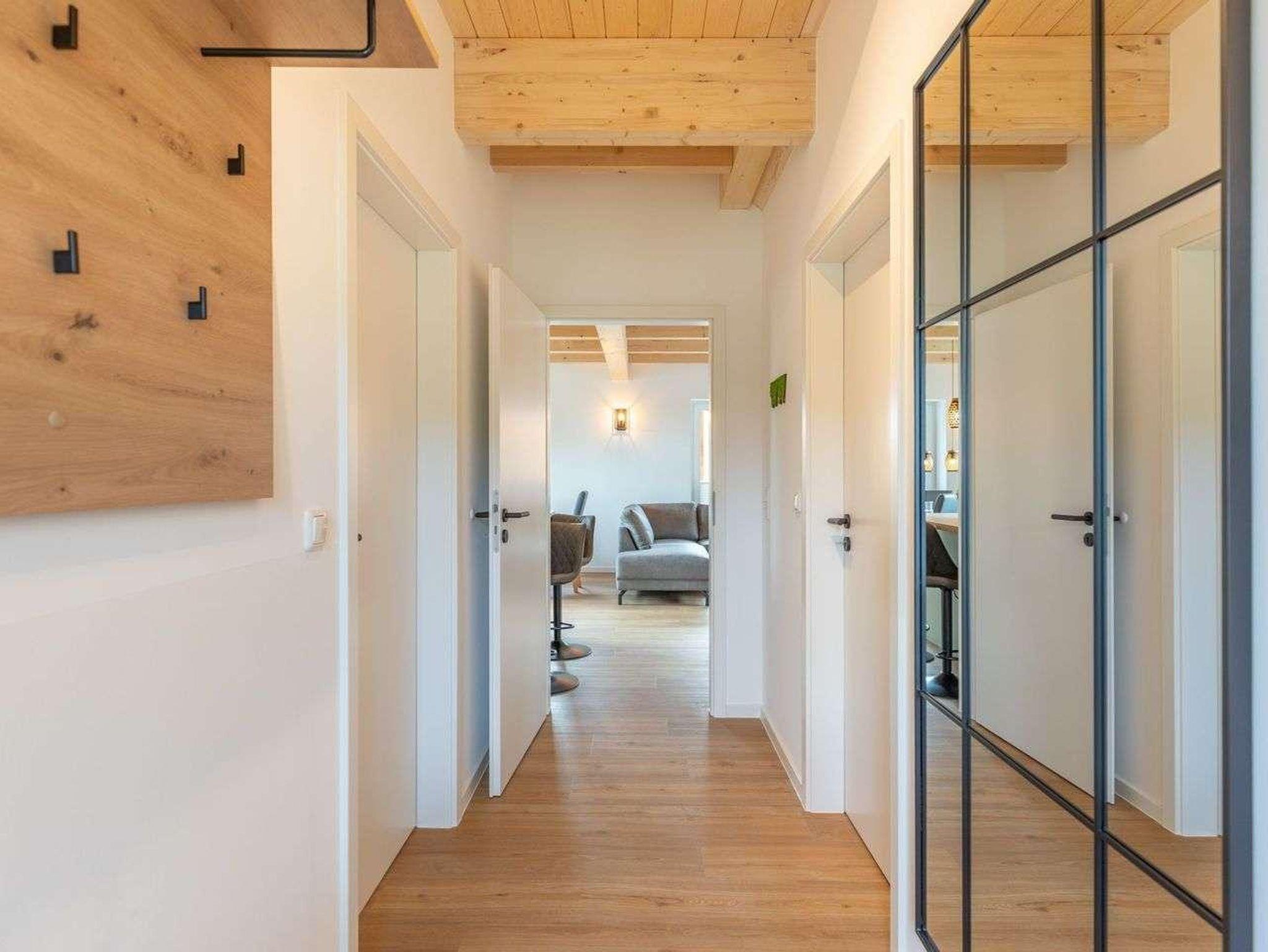 Die offene Küche ist voll ausgestattet mit Induktionskochfeld, Backofen, Mikrowelle, Spülmaschine, Senseo-Kaffeemaschine und Kühlschrank mit Gefrierfach – perfekt für gemeinsame Kochabende. Im gemütlichen Wohnbereich laden eine Sofaecke und ein SMART-Fernseher zum Verweilen ein. Kostenloses, schnelles WLAN hält Sie jederzeit online. Der angrenzende Essbereich bietet ausreichend Platz für alle Gäste.