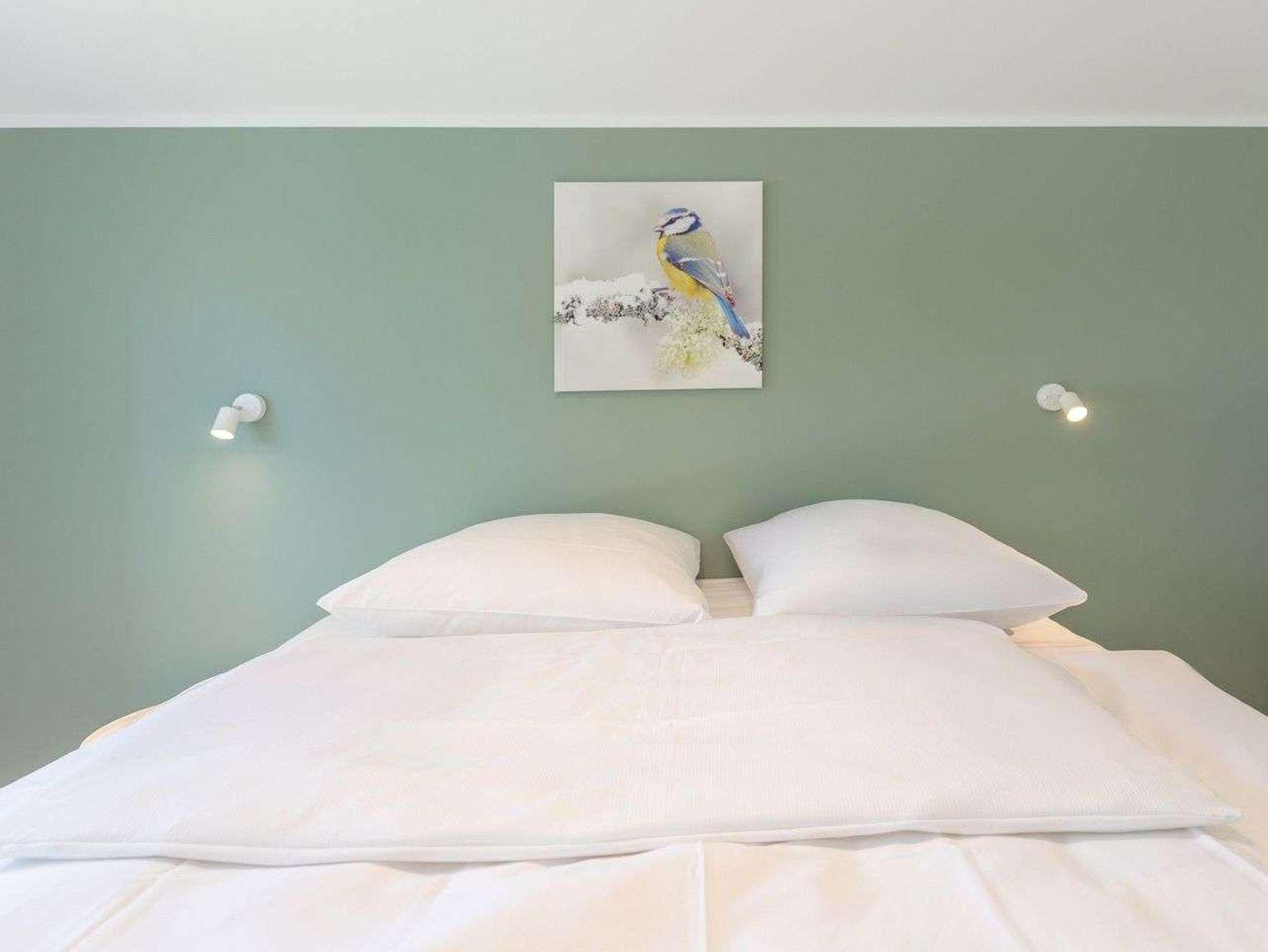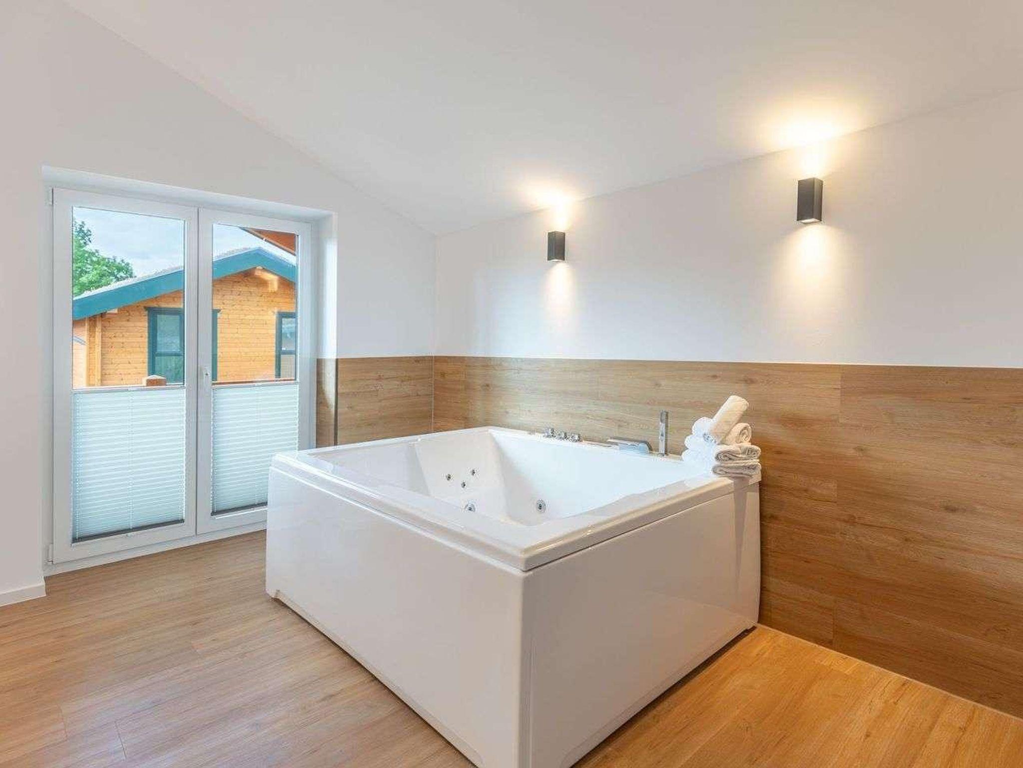 Ein modernes Badezimmer mit bodengleicher Dusche, WC sowie Sauna und einem Whirlpool sorgen für besonderen Komfort. Ein echtes Highlight ist der angrenzende Balkon mit wunderbarer Aussicht über das Katinger Watt!