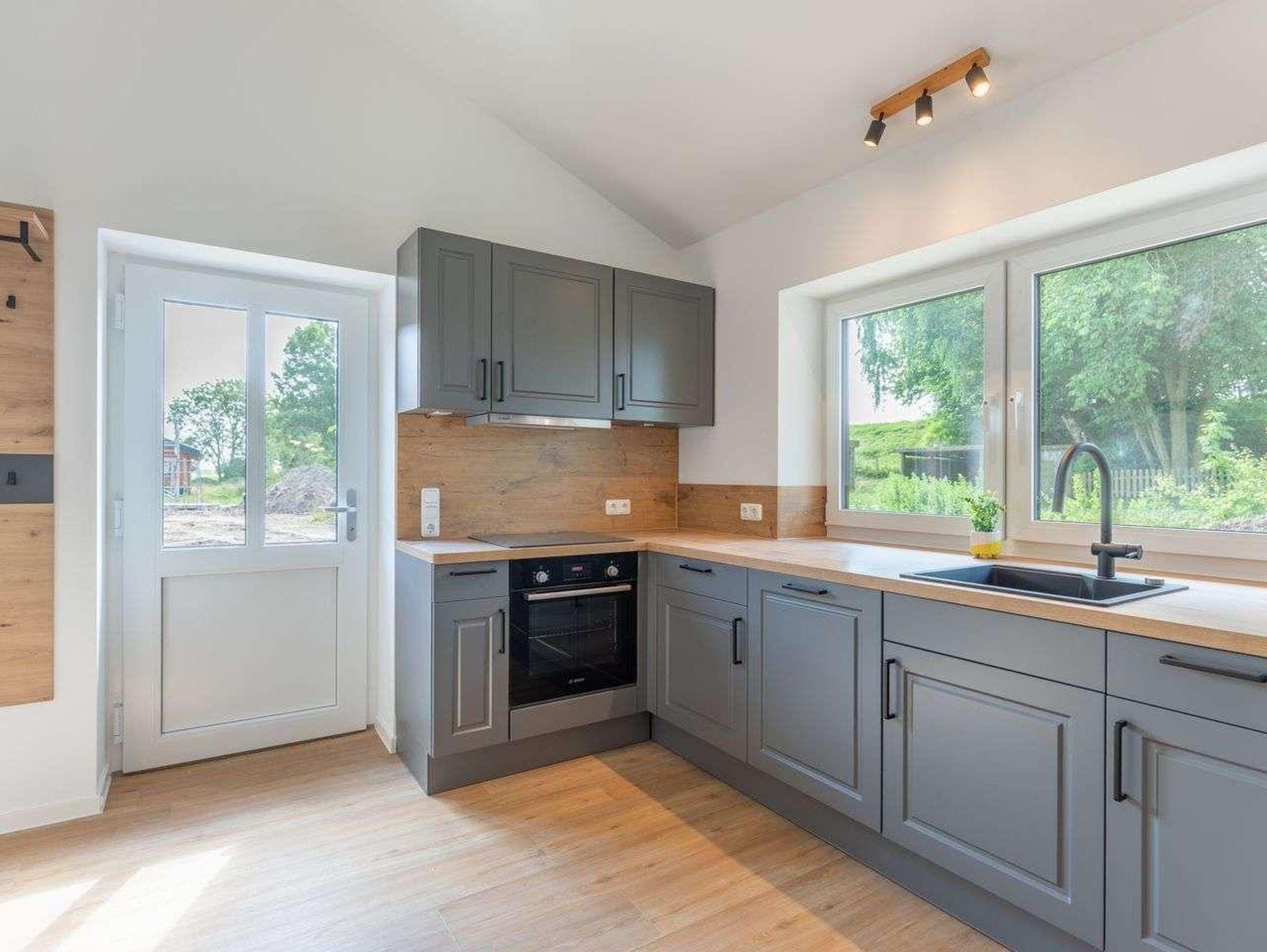 Die offene Küche ist voll ausgestattet mit Induktionskochfeld, Backofen, Mikrowelle, Spülmaschine, Senseo-Kaffeemaschine und Kühlschrank mit Gefrierfach – perfekt für gemeinsame Kochabende. Im gemütlichen Wohnbereich laden eine Sofaecke und ein Smart-Fernseher zum Verweilen ein. Kostenloses, schnelles WLAN hält Sie jederzeit online. Der angrenzende Essbereich bietet ausreichend Platz für alle Gäste.