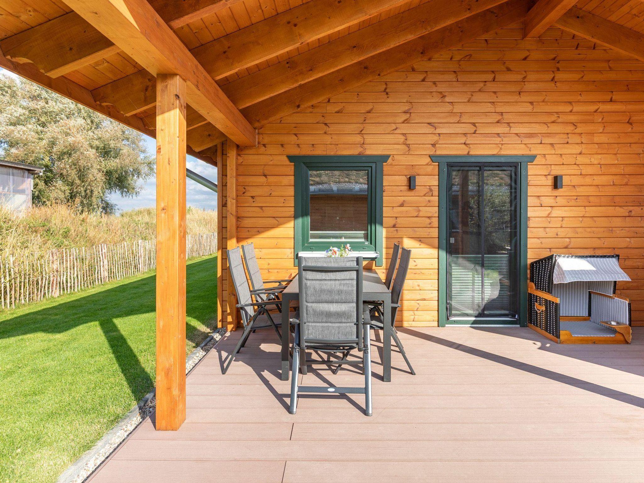 Gartenmöbel, ein Kugel-Holzkohlegrill und ein Windschutz laden zu entspannten Stunden auf der Terrasse ein. Für Wellnessliebhaber steht eine eigene Sauna zur Verfügung – ideal, um nach einem aktiven Tag zur Ruhe zu kommen.
