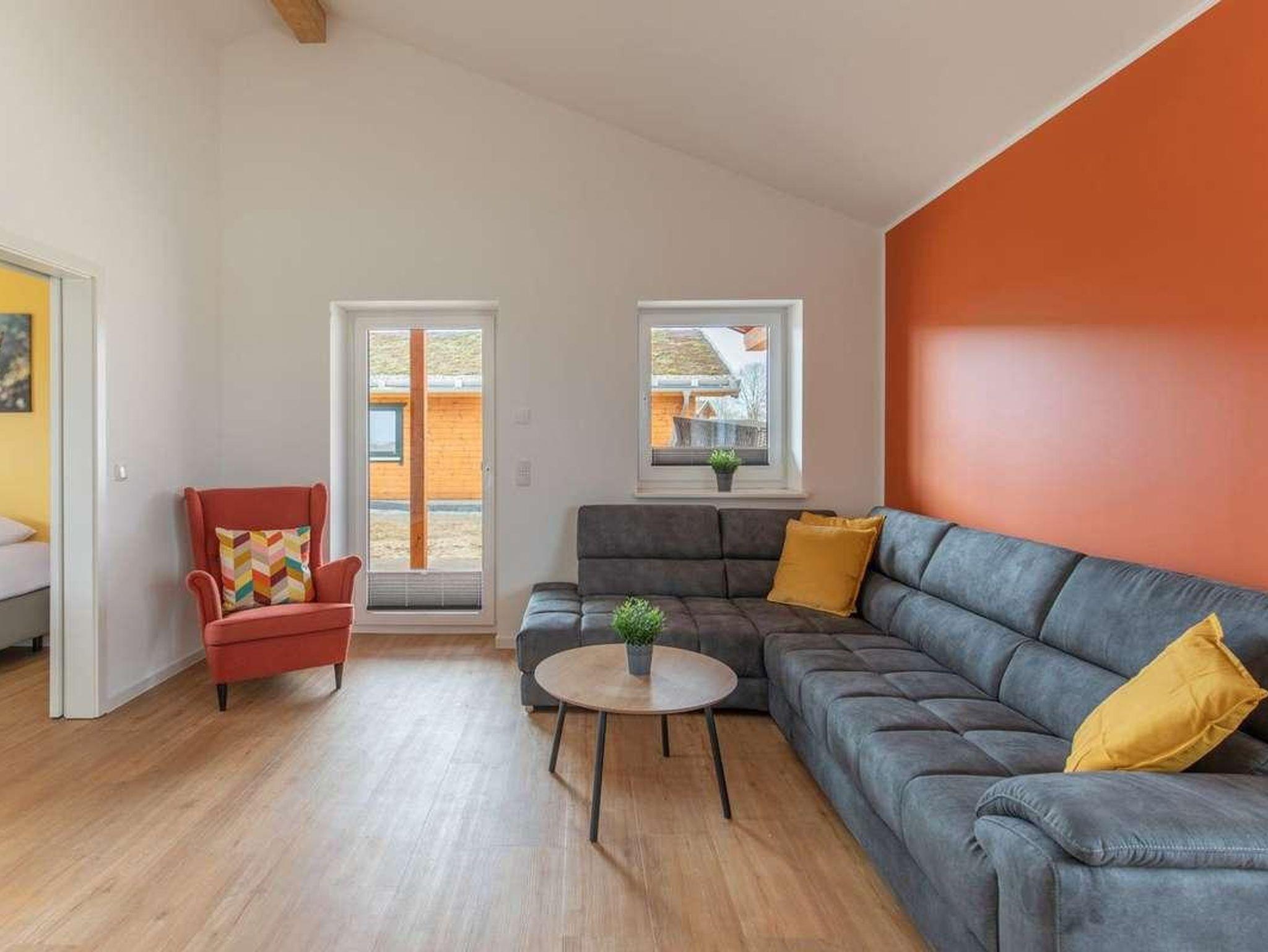 Die offene Küche ist voll ausgestattet mit Cerankochfeld, Backofen, Mikrowelle, Spülmaschine, Senseo-Kaffeemaschine und Kühlschrank mit Gefrierfach – perfekt für gemeinsame Kochabende. Im gemütlichen Wohnbereich laden eine Sofaecke und ein SMART-Fernseher zum Verweilen ein. Kostenloses, schnelles WLAN hält Sie jederzeit online. Der angrenzende Essbereich bietet ausreichend Platz für alle Gäste.