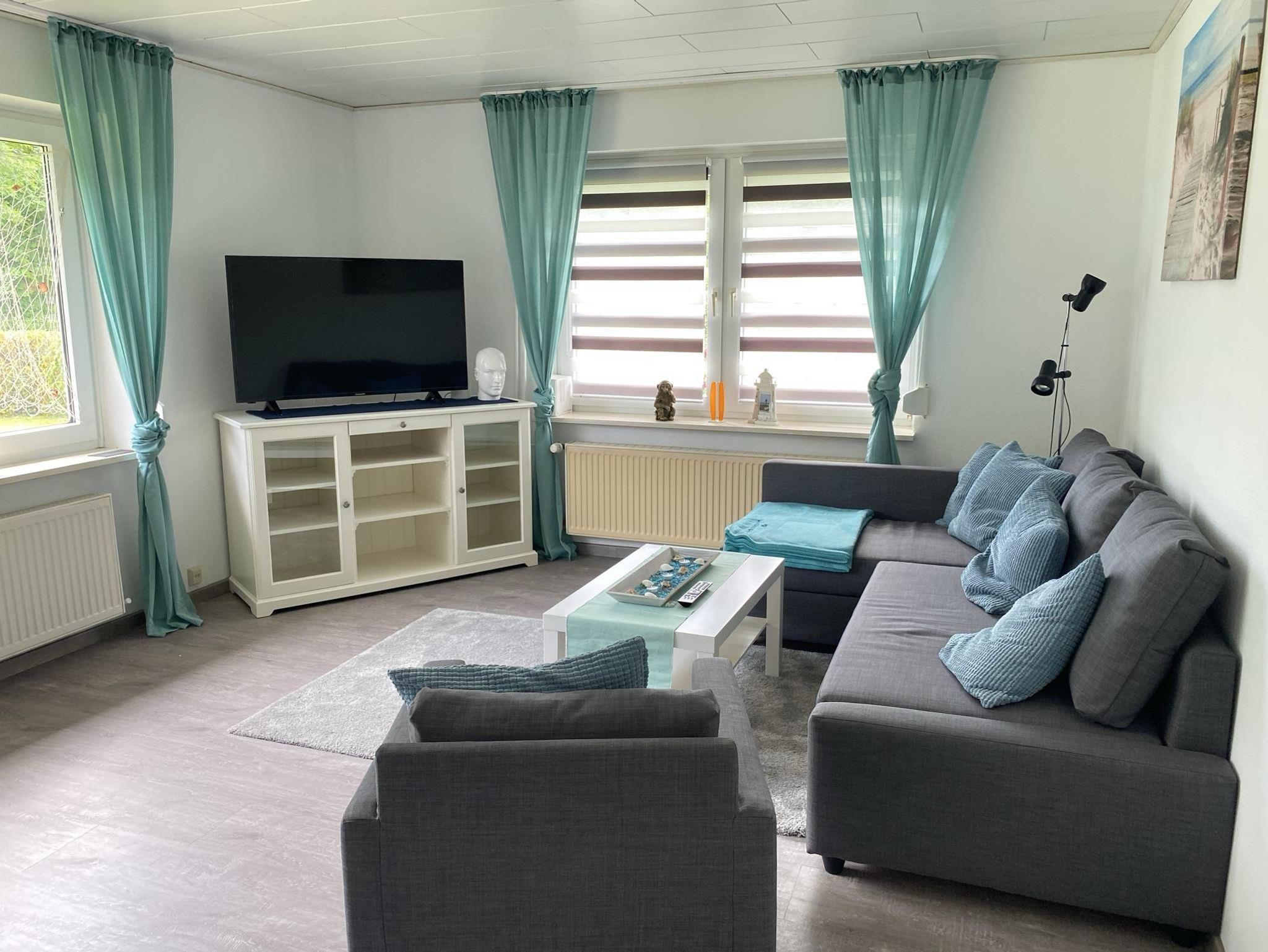 Die Fischerhütte befindet sich im Untergeschoss des Ferienhauses und ist über einen eigenen Eingang zu erreichen. Die Wohnung verfügt über ein Schlafzimmer mit einem großen Bett und ein weiteres Schlafzimmer mit zwei Einzelbetten. Ein sehr geräumiges Wohnzimmer mit einer Essecke laden zum gemeinsamen Essen oder Spieleabend ein. Die voll ausgestattete Küche ermöglicht das gemeinsame Kochen.