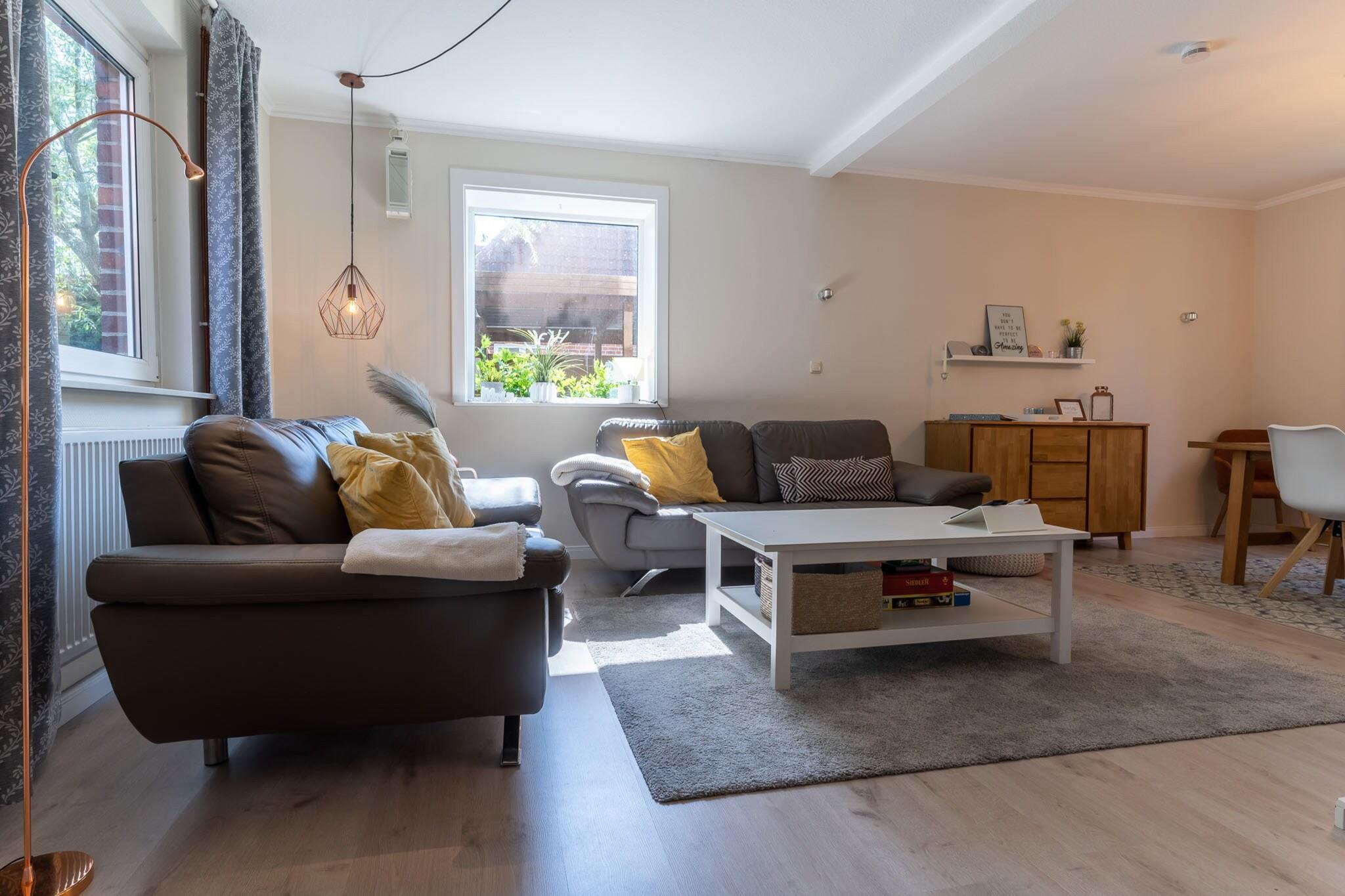 Første etasje: (åpent kjøkken(komfyr med kokeplater(komfyr med 4 kokeplater, keramisk), vannkoker, brødrister, kjøkkenvifte, kaffetrakter, stekovn, mikrobølgeovn, oppvaskmaskin, kjøleskap(+ fryser)), Stue/spisestue(TV, spisebord, sittehjørne, DVD-spiller), bad(badekar, håndvask, toalett, Hårtørker)) i 2. etasje: (soveværelse(dobbeltseng), soveværelse(enkeltseng, enkeltseng)) oppvarming, hage(inngjerdet), hagemøbler, parkering, Inkl. vaskeripakke
