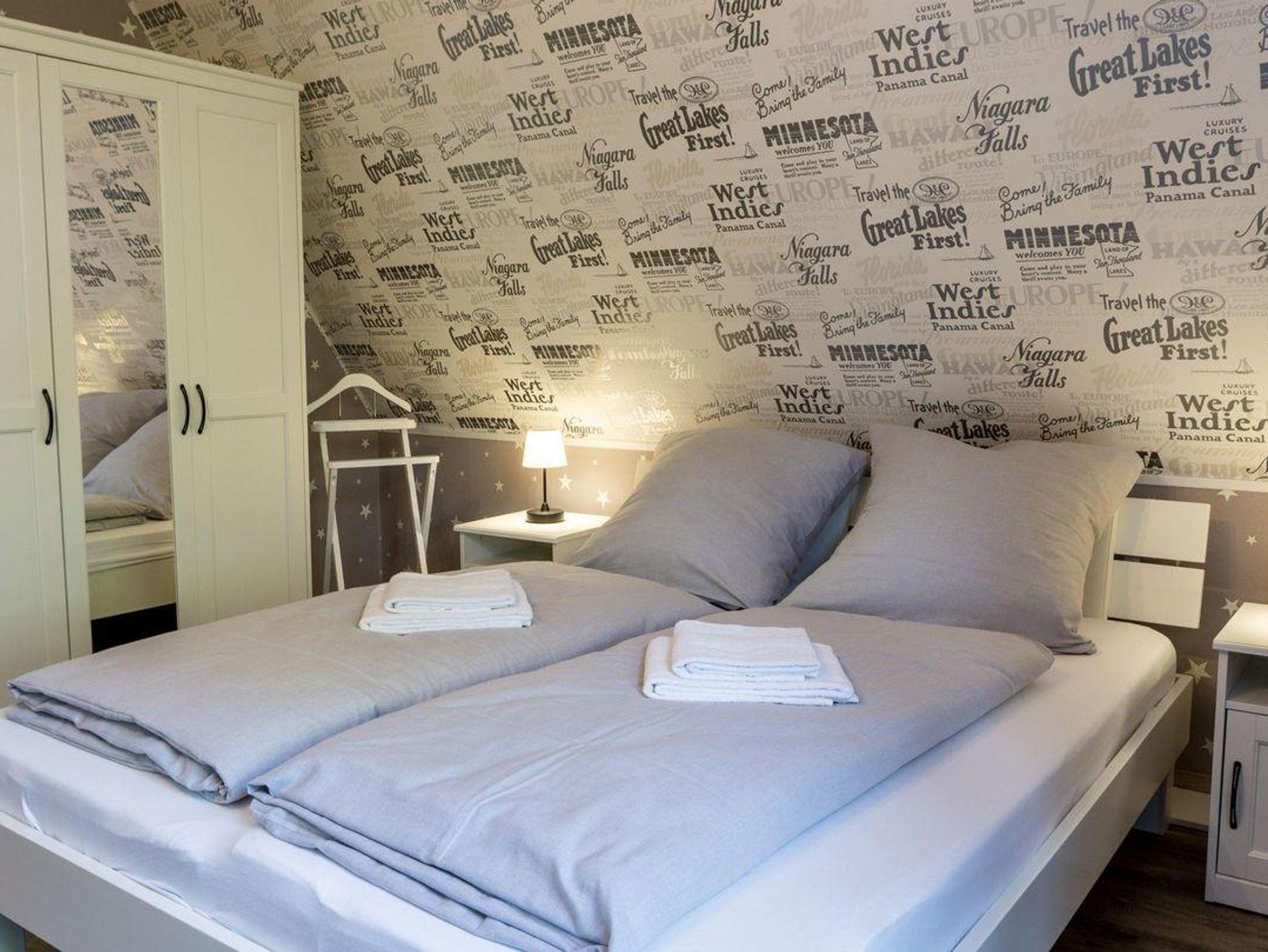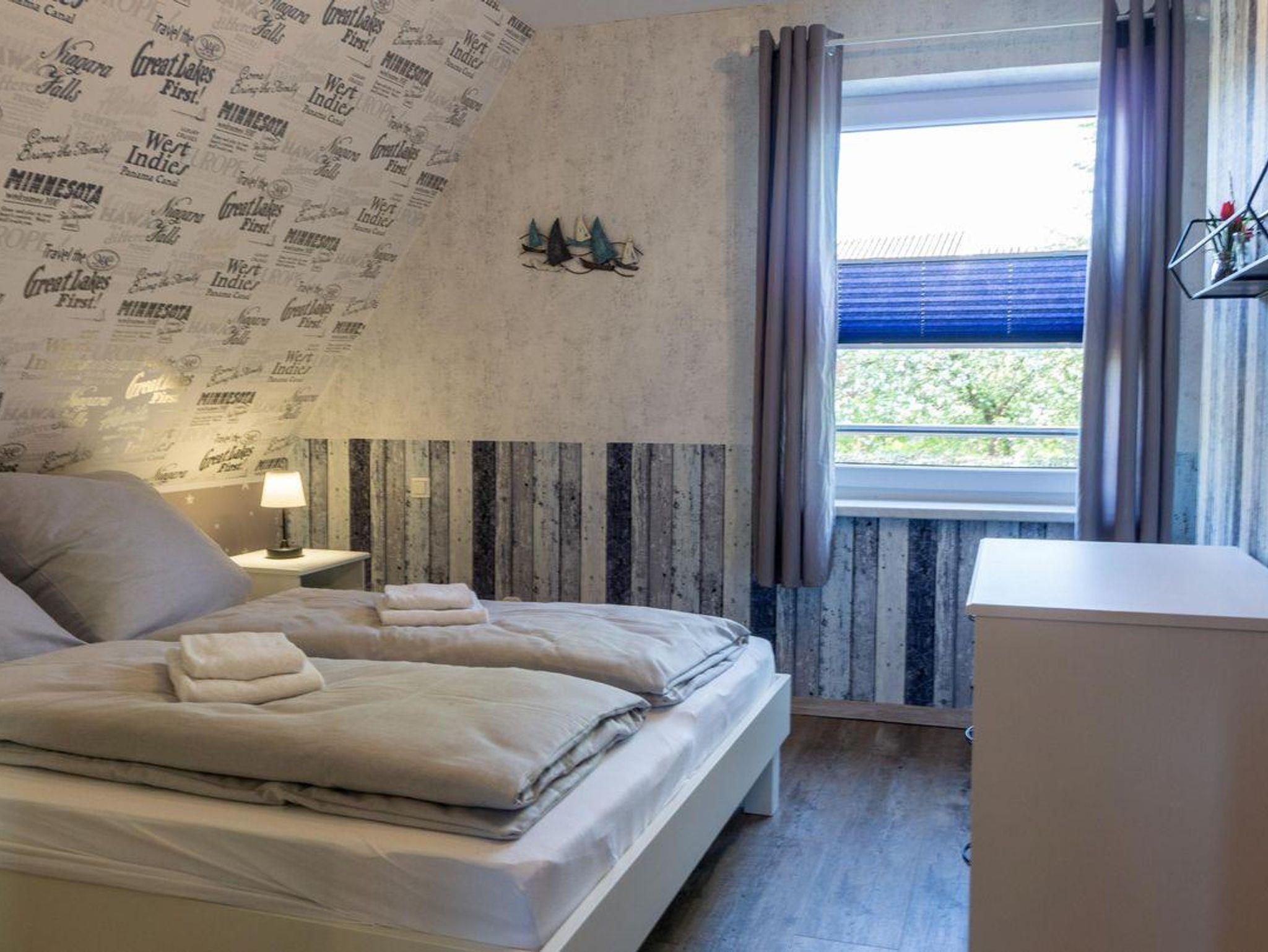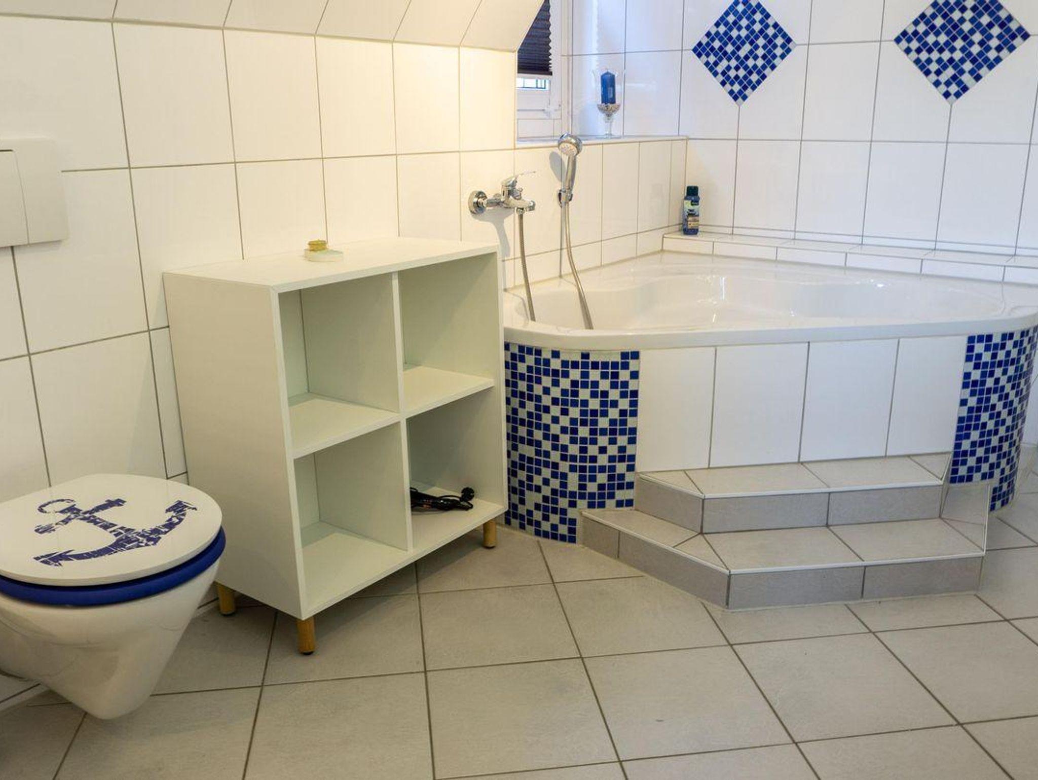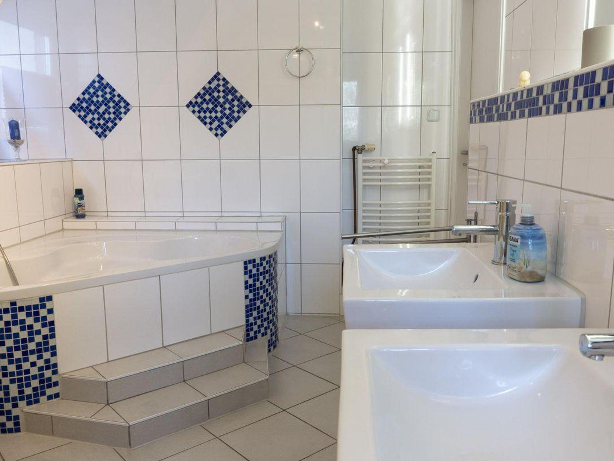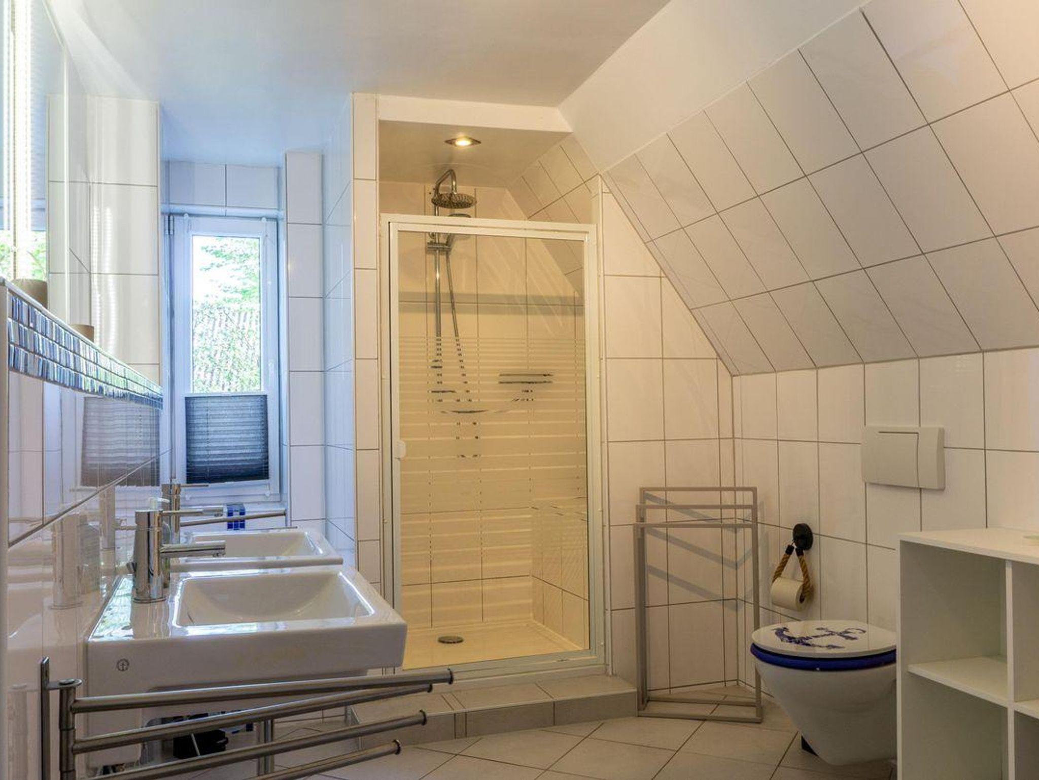 Die beiden Schlafzimmer im Obergeschoss sind mit bequemen Doppelbetten ( 180cm und 160cm mit Allergikerbezügen) und Kleiderschränken sowie Kommoden ausgestattet. Im Badezimmer erwarten Sie eine Eckbadewanne, Dusche und WC sowie 2 Waschbecken. Ein Föhn wird bereitgestellt.