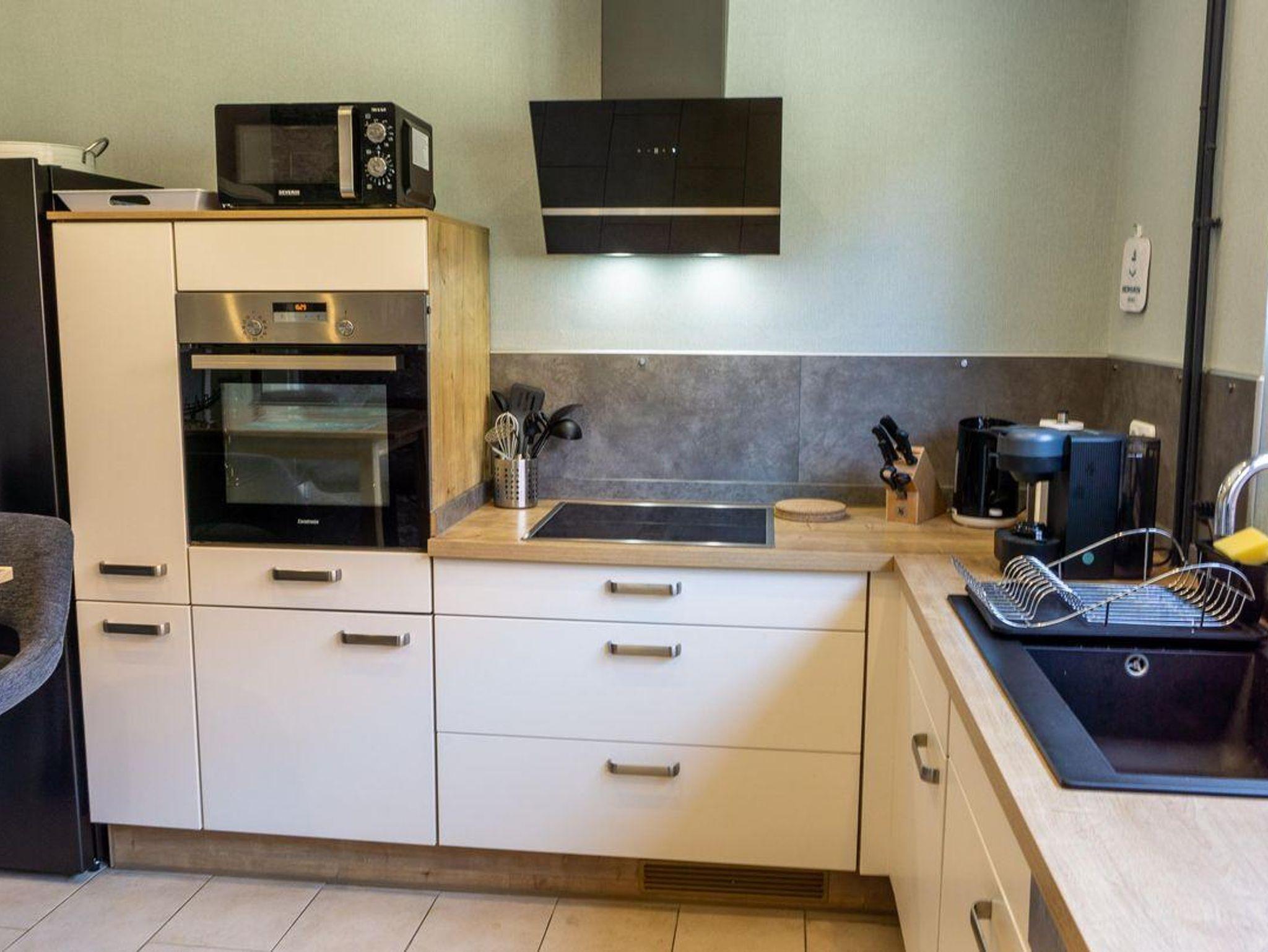 Es erwarten Sie auf 120 m² eine voll ausgestattete Küche mit Kaffeemaschine und Pad-Maschine, ein großer Wohn-/Essbereich mit Schwedenofen, gemütlichem Sofa und Smart TV. WLAN ist vorhanden.