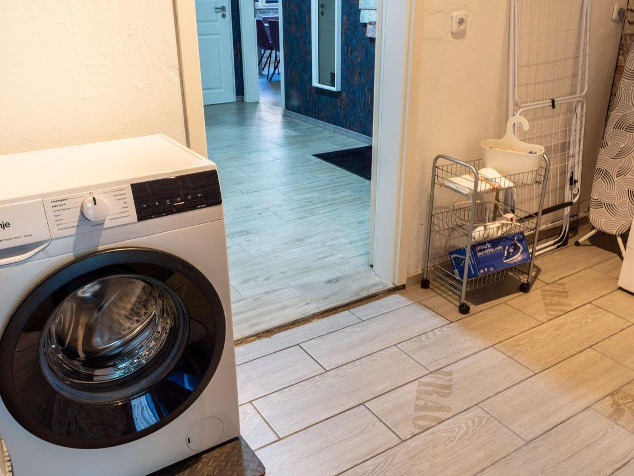 Neben der Gästetoilette befindet sich die Waschküche mit Waschmaschine und Trockner.
