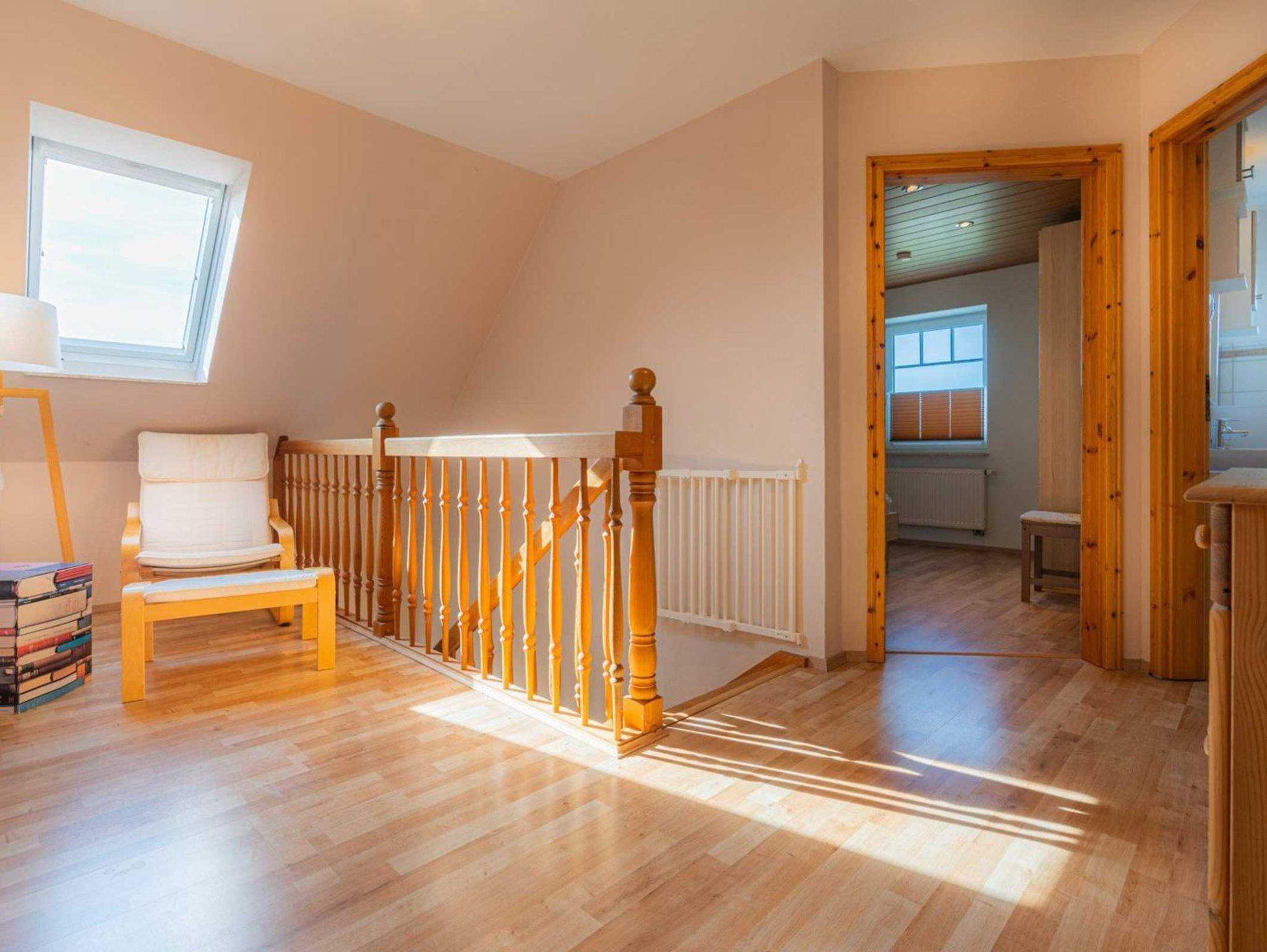 Flur im Eingangsbereich mit Spiegel, Schuhablage und Garderobe. Hauswirtschaftsraum mit Gefrierschrank, Haushaltsschrank mit Staubsauger und kostenloser Waschmaschine und Trockner. Flur im OG mit Lese-Ecke. Moderne Erdwärme-Zentralheizung, die gefliesten Bereiche verfügen über Fußbodenheizung. Kostenloses Kinderbett und Kinderhochstuhl vorhanden.