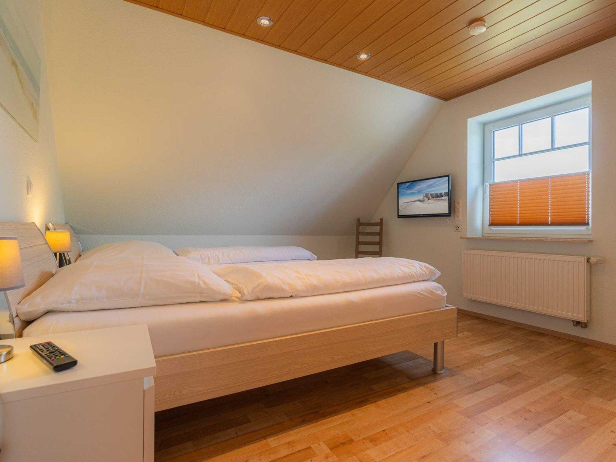 1. Schlafzimmer mit Doppelbett (2x 90x200 cm), TV und Kleiderschrank.