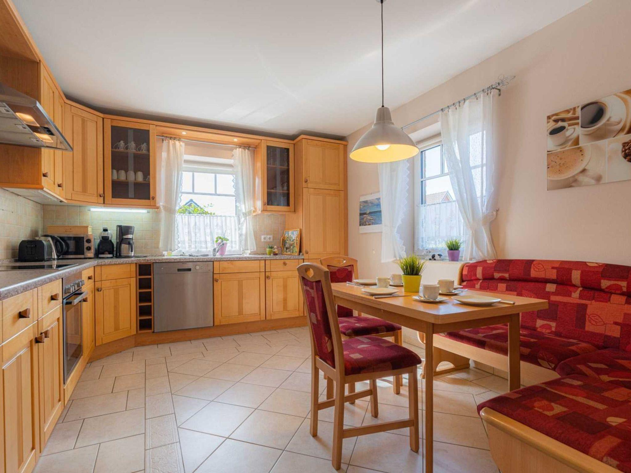 Separate Küche mit Backofen, Mikrowelle, Geschirrspüler, Kühlschrank und Nescafe Dolce Gusto-Kapselmaschine. Frühstücken Sie in Ruhe auf der gemütlichen Eckbank mit Tisch und 2 Stühlen.