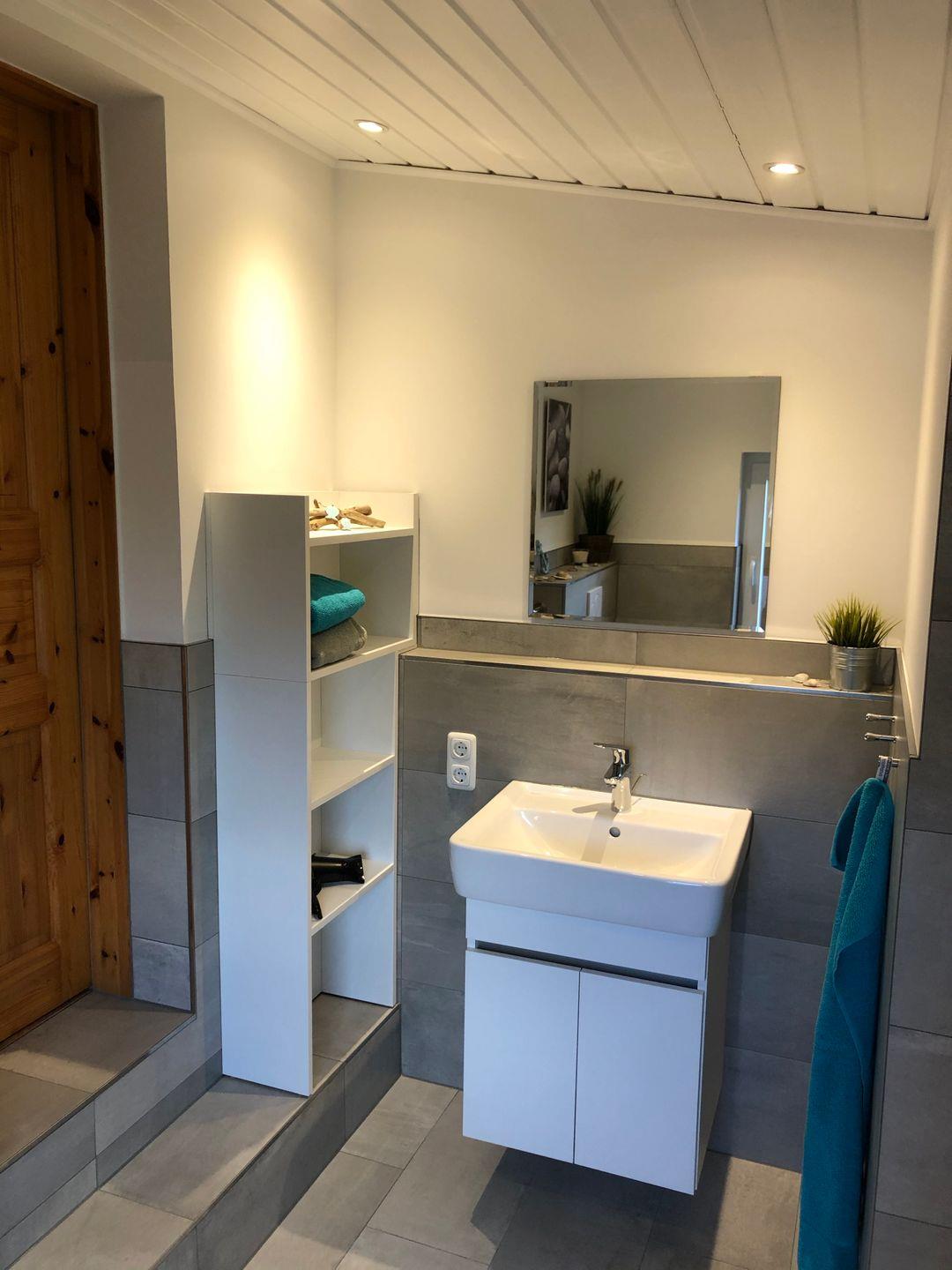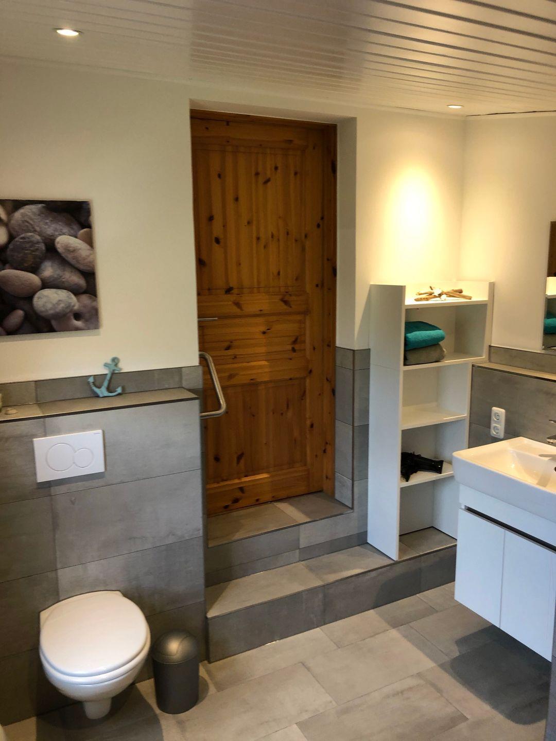 Vom Wohnbereich erreichen Sie (über 1 Stufe) das geräumige Duschbad mit Außenfenster.