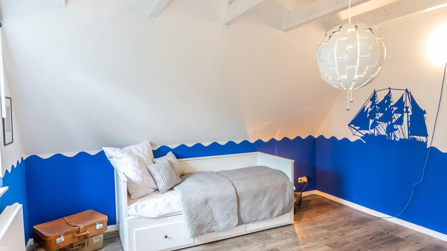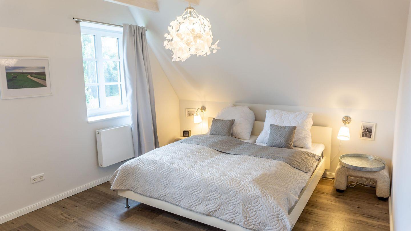 Zur Nachtruhe laden zwei behagliche Schlafzimmer (160 x 200 cm), mit ein Doppelbett und ein Hemnes-Bett (Kojenbett- ausziehbar zum Doppelbett auf gleicher Höhe 160 cm breit), ein.