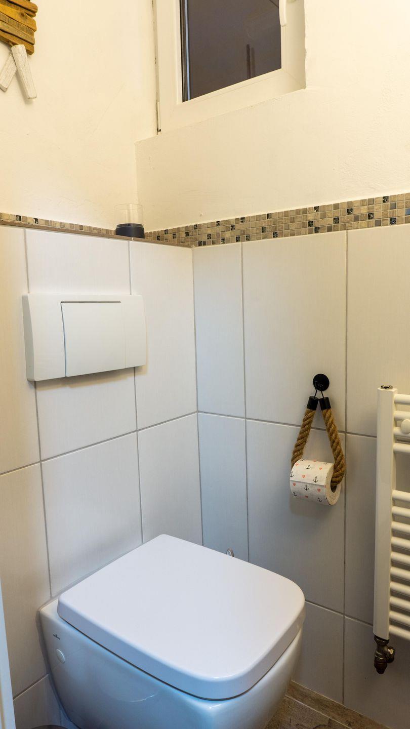 Neben der Gästetoilette befindet sich die Waschküche mit Waschmaschine und Trockner.
