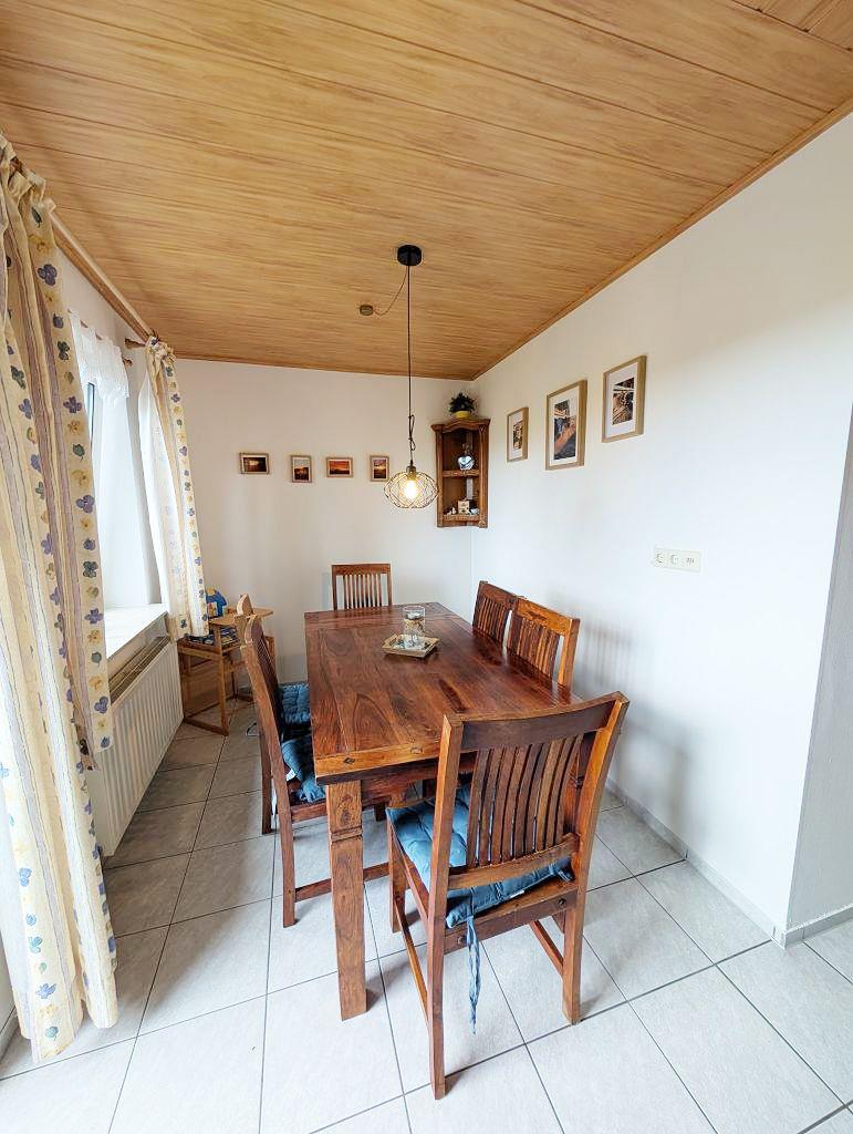 Die offene, geschlossene Küche ist mit modernen Annehmlichkeiten ausgestattet, darunter ein Ceranherd, ein Backofen, eine Spülmaschine, ein Kühlschrank mit Gefrierfach sowie zahlreiche Küchenutensilien. Ein Esstisch im Küchenbereich lädt zu gemeinsamen Mahlzeiten ein.
