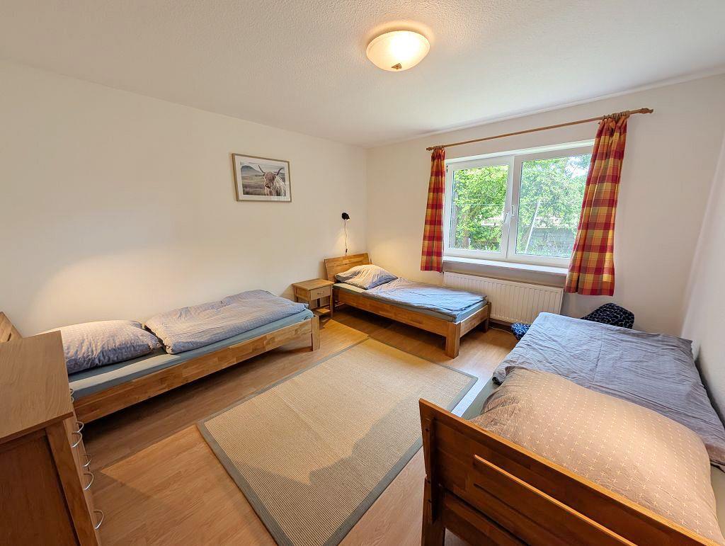 Mit einer Gesamtfläche von 90 m² und sieben Zimmern, darunter zwei Schlafzimmer mit einem Doppelbett (180x200cm) sowie ein 3 Bettzummer mit (90x200cm) und zwei Badezimmer im Form eines Duschbads und Gäste WC, bietet Kleeblatt-Dairy ausreichend Platz, um sich zu entspannen und gemeinsam Zeit zu verbringen.