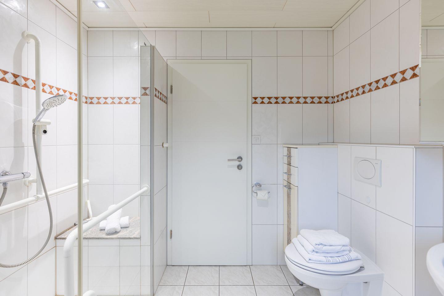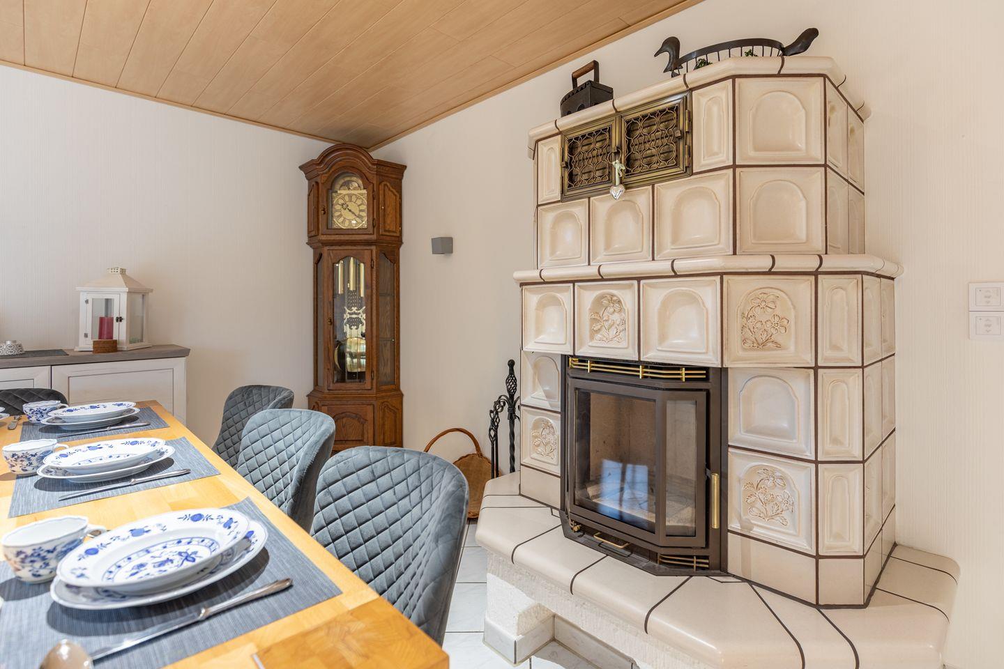 Im Erdgeschoss erwarten Sie ein behagliches Wohn- und Esszimmer mit Kachelofen, eine moderne Küche sowie ein barrierefreies Badezimmer.