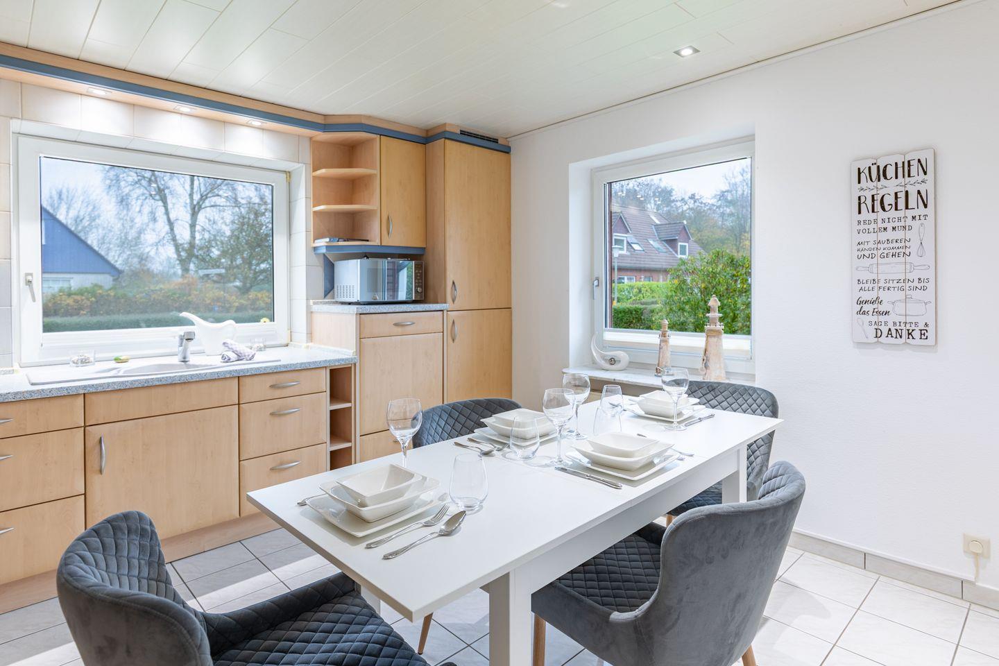 Die modern und gemütlich gestaltete Einrichtung sorgt für Wohlfühlatmosphäre. Der offene Wohnbereich lädt zum Entspannen ein und die gut ausgestattete Küche bietet alles, was Hobbyköche benötigen. Im großzügigen Essbereich finden gemeinsame Mahlzeiten Platz, während sich die gemütliche Sitzecke perfekt für entspannte Abende eignet.