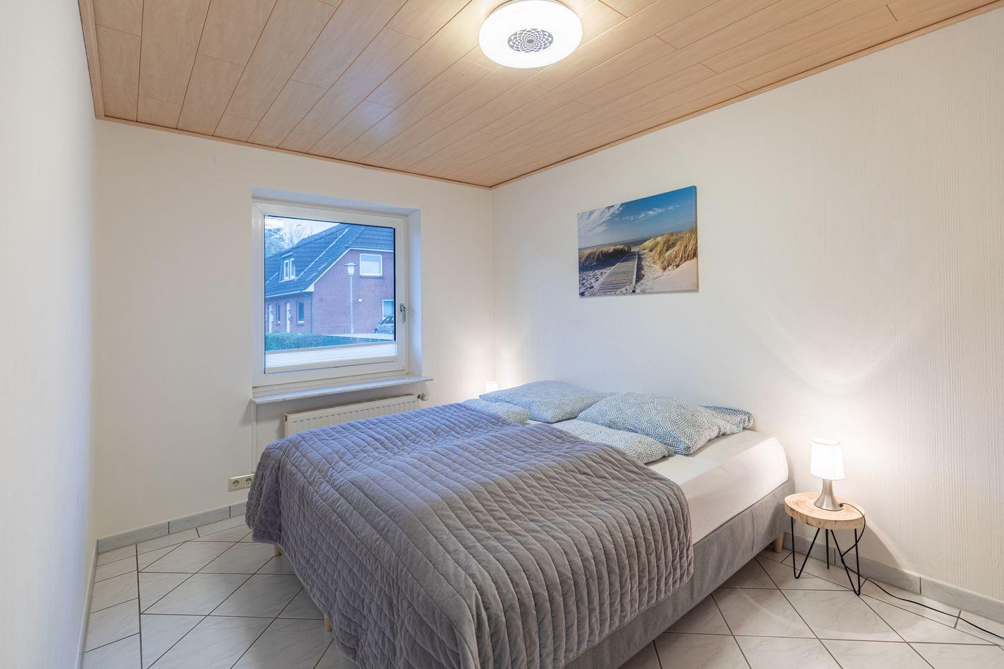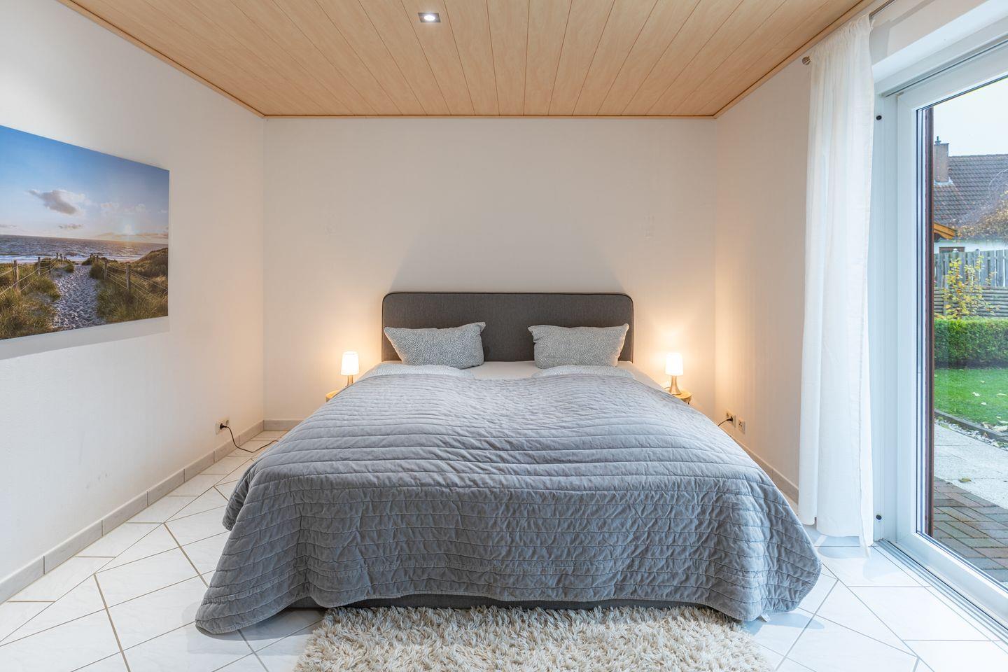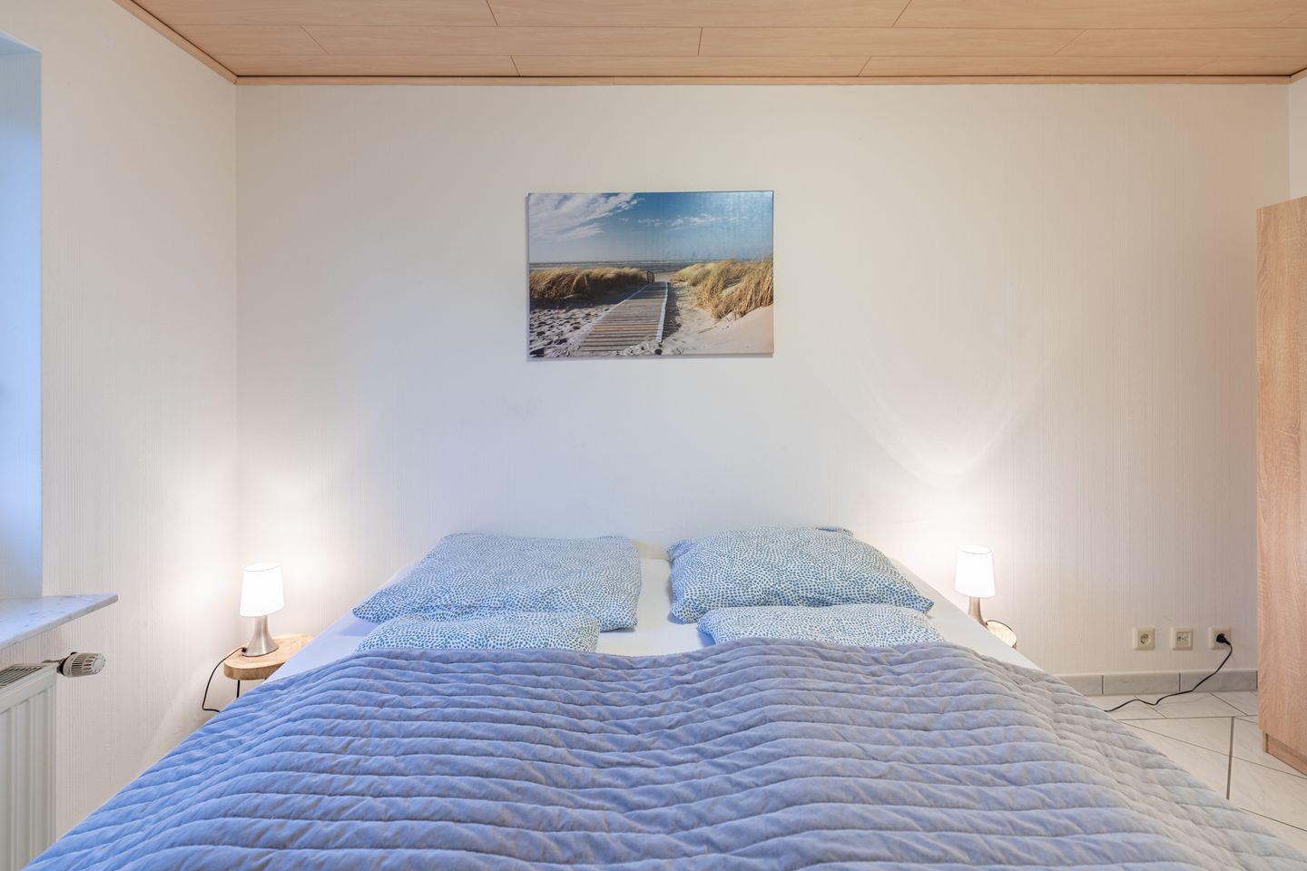 Zwei Schlafzimmer befinden sich im Erdgeschoss. Eines mit einem großen Boxspringbett (1,80 × 200 cm) und ein kleineres mit einem Bett mit der Größe 1,60 × 200 cm.