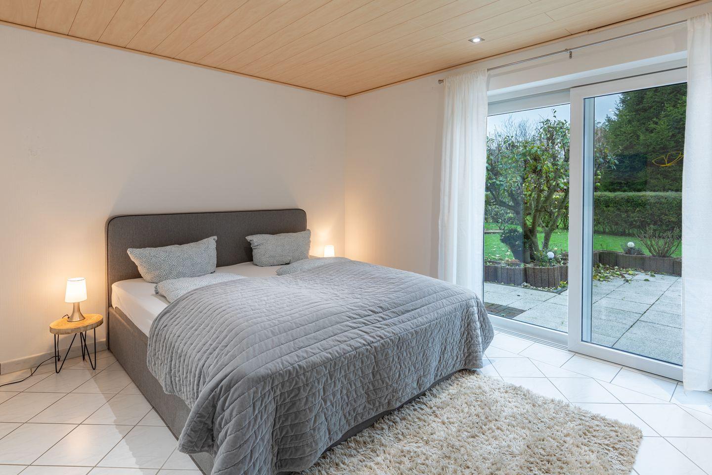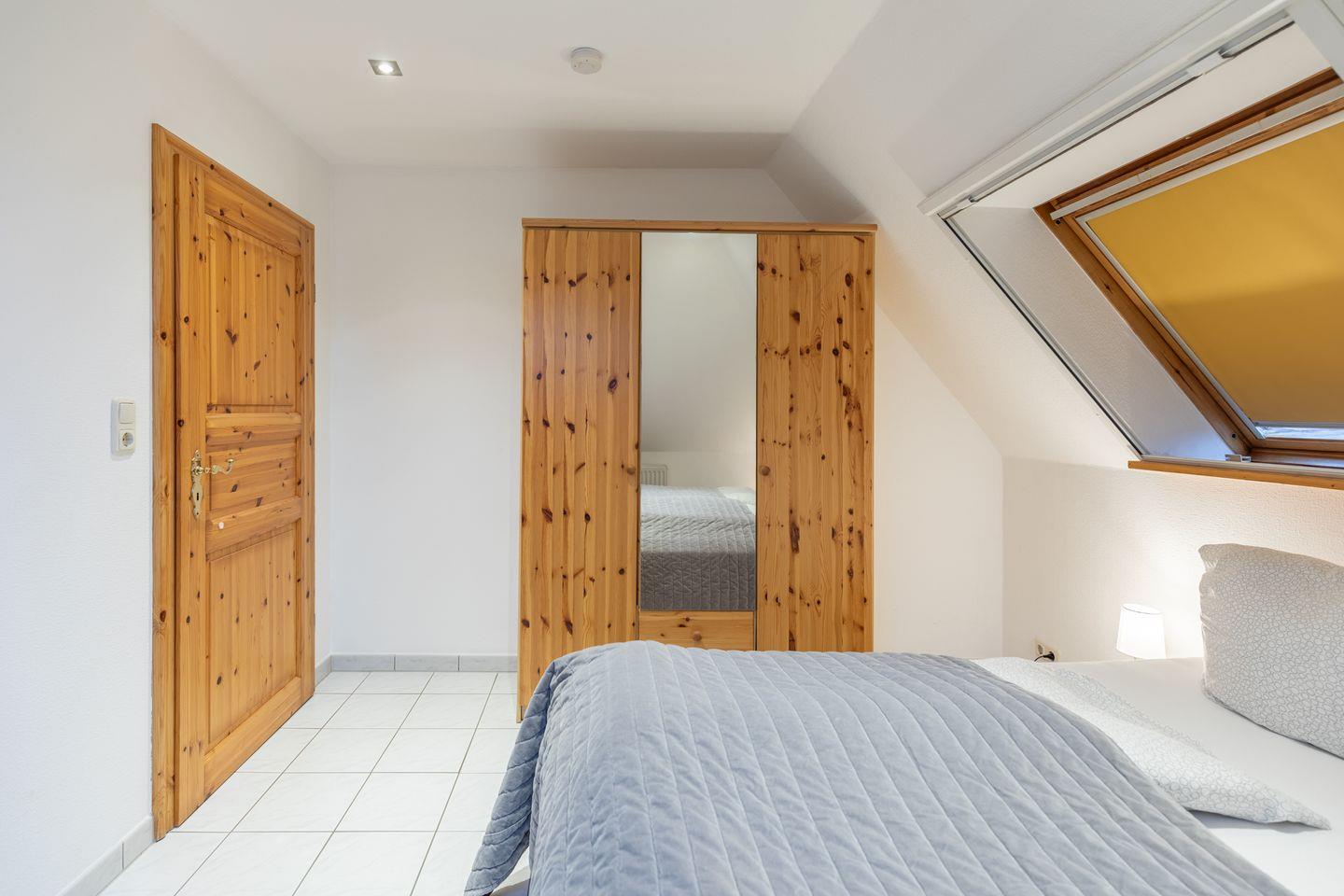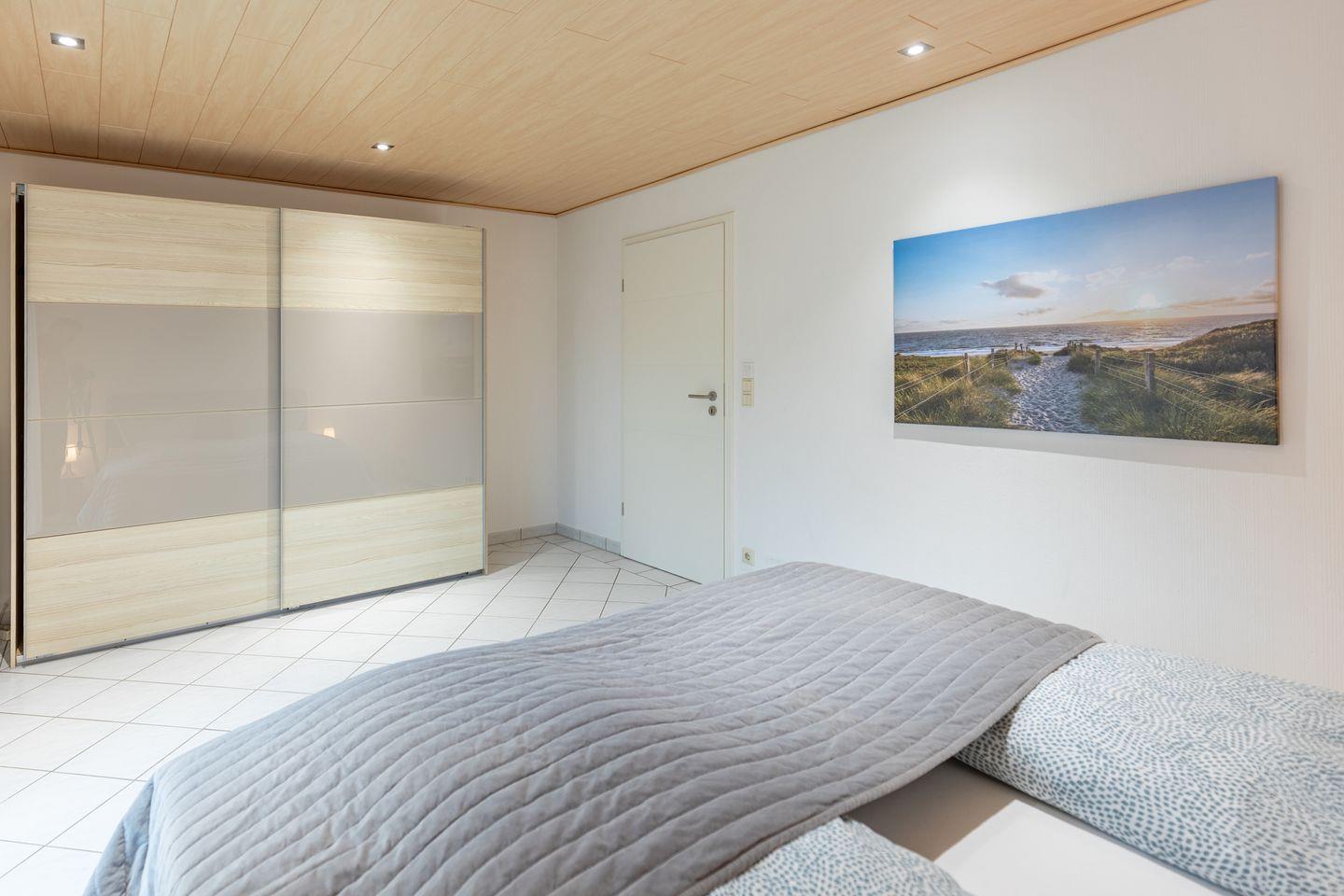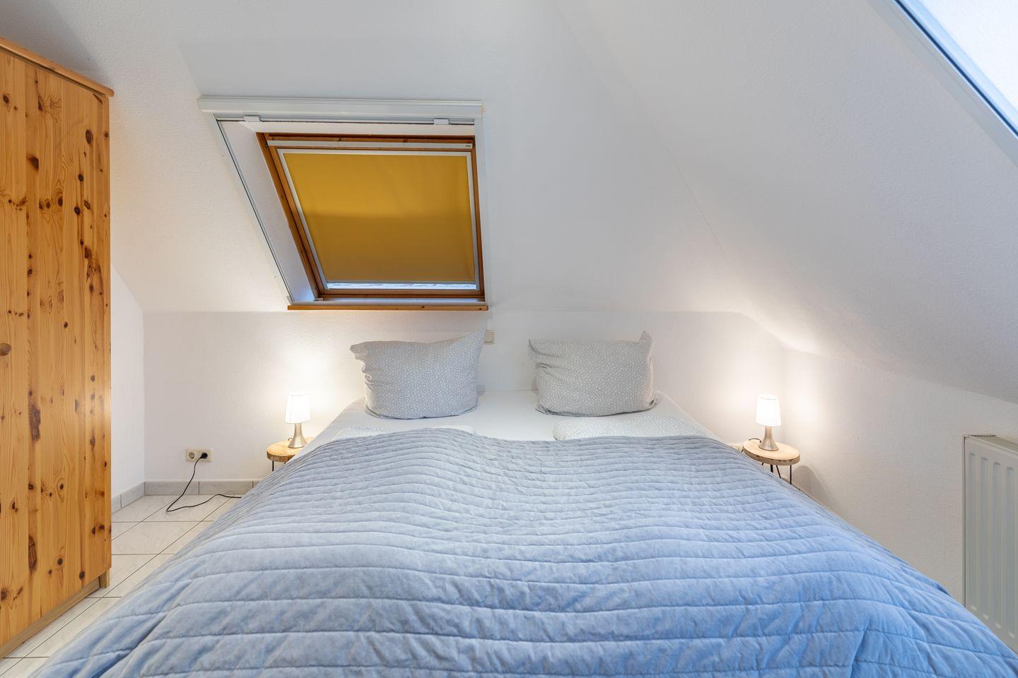 Zwei Schlafzimmer befinden sich im Erdgeschoss. Eines mit einem großen Boxspringbett (1,80 × 200 cm) und ein kleineres mit einem Bett mit der Größe 1,60 × 200 cm.
