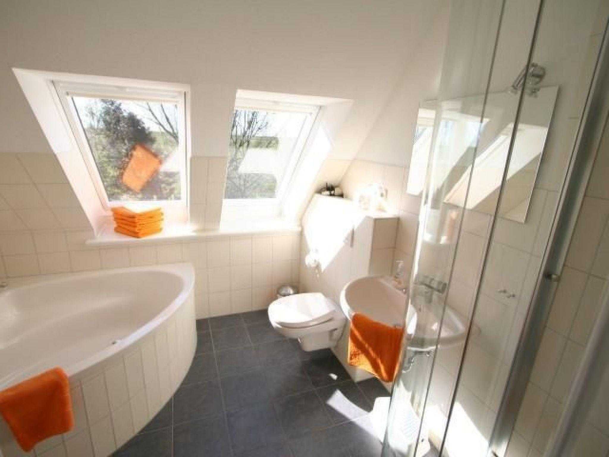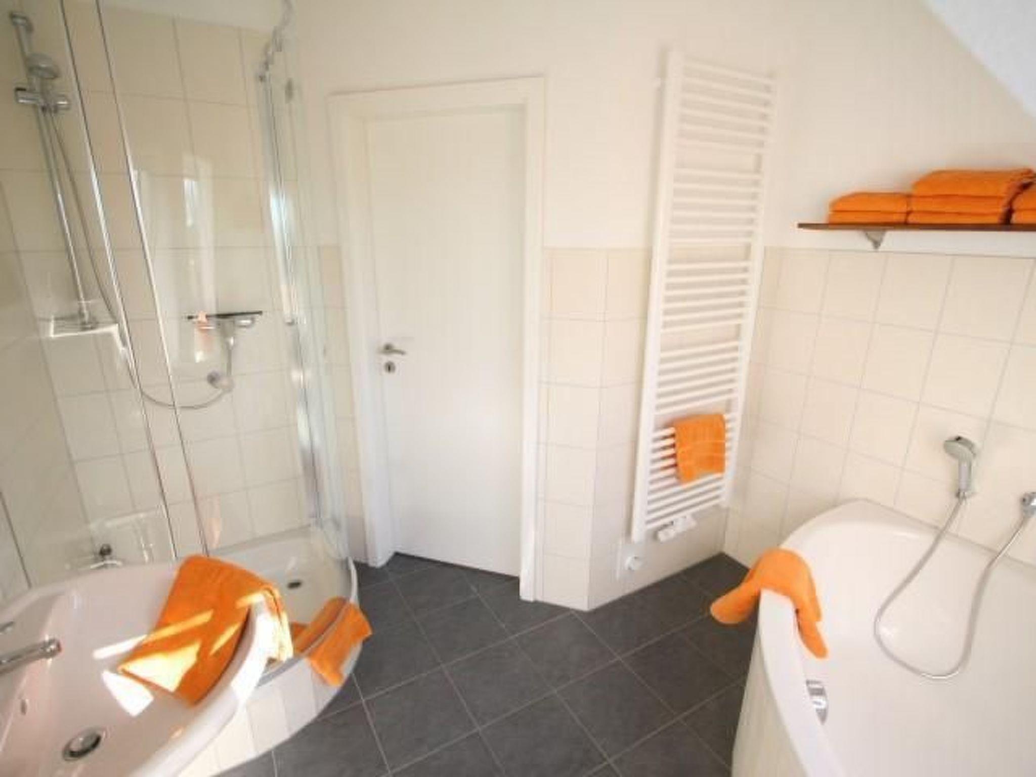 The eat-in kitchen is equipped with a dishwasher, fridge with freezer compartment, toaster, coffee machine, cooker with ceramic hob, convection oven and kettle and offers enough space to sit and chat.