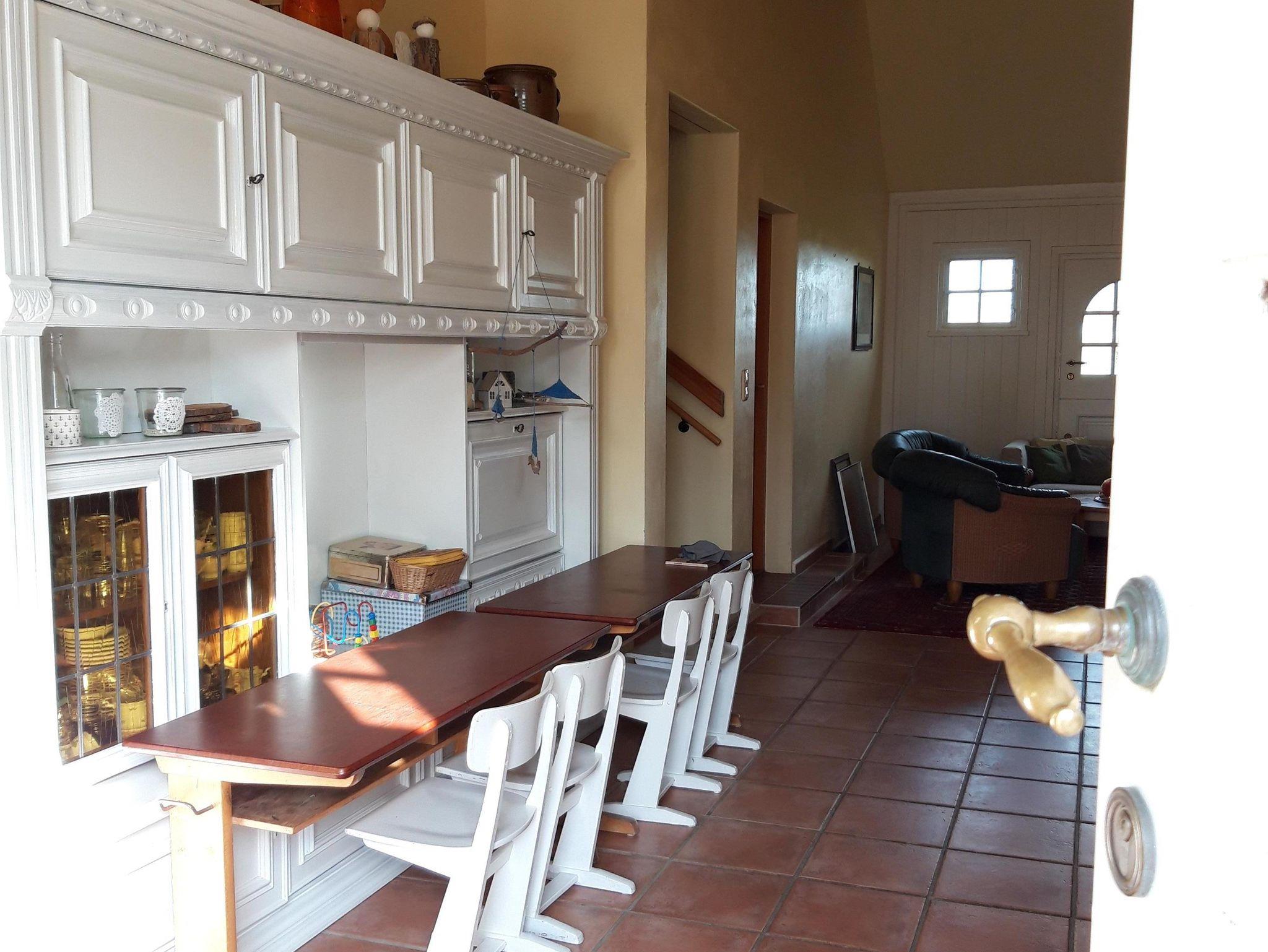 Die Wohnung in der 1. Etage besteht aus einem Wohn/-Esszimmer (gefliest) mit Sat-TV, CD-Player und Ecksofa. Die Küche ist komplett ausgestattet: Backofen mit Ceranfeld, Abzugshaube, Kühlschrank mit Gefrierfach, Geschirrspülmaschine, ausreichend Geschirr, Toaster, Kaffeemaschine mit Thermoskanne, Wasserkocher, Mixer.