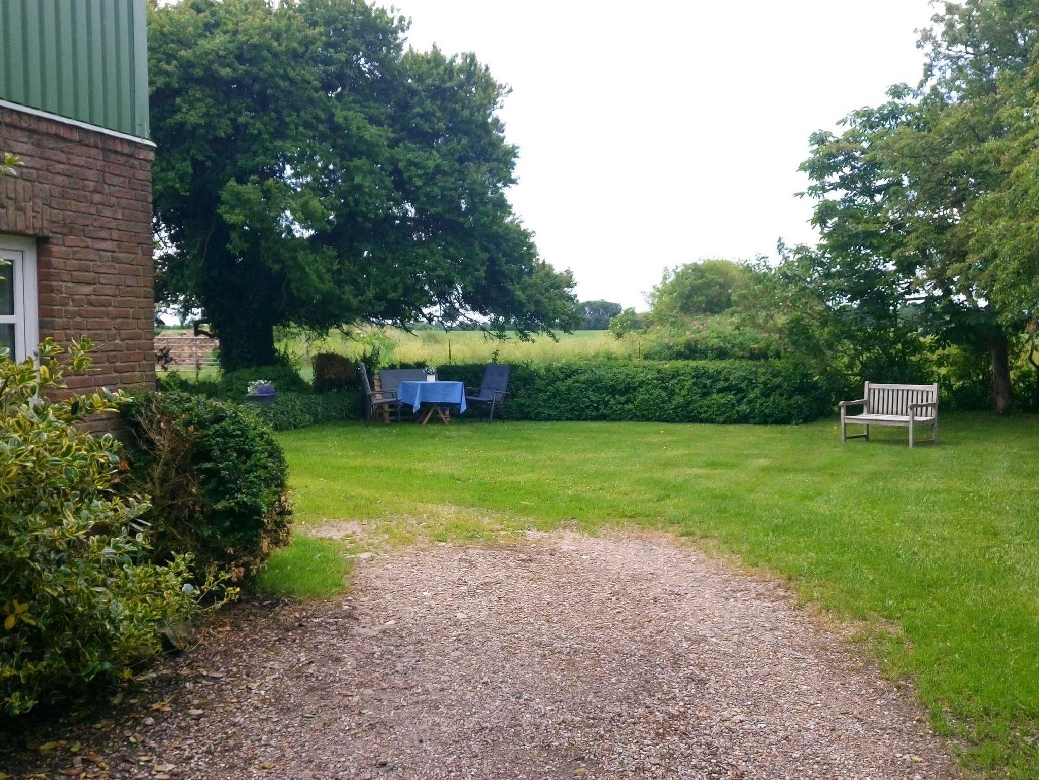 Auf dem großen Hofgrundstück und im großen Garten gibt es verschiedene Sitzgelegenheiten und tolle Spielmöglichkeiten für Kinder. Platz zum Parken und eine Unterstellmöglichkeit für Fahrräder sind ebenso vorhanden wie eine Grillmöglichkeit.