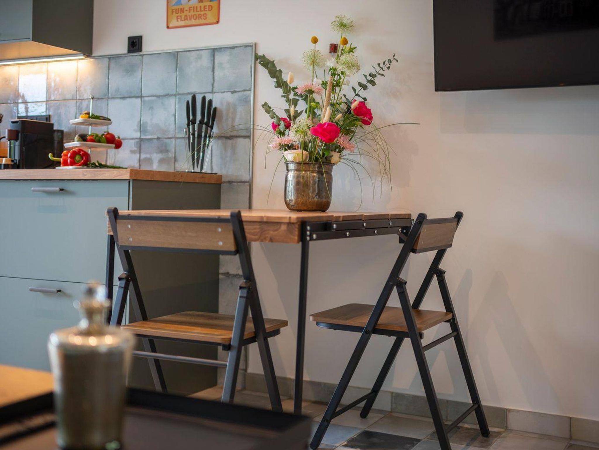 Unser Maisonette-Appartement für zwei Personen verkörpert das Motto „Design trifft Vintage“ auf 50 Quadratmetern. Genießen Sie ein behagliches Wohngefühl in einem offenen Wohn- und Küchenbereich mit direktem Zugang zur Terrasse, die Ihnen einen atemberaubenden Sonnenaufgang bietet.