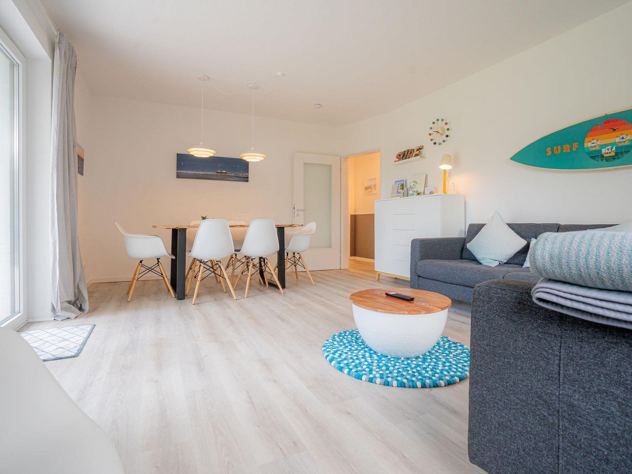 Die im Erdgeschoss gelegene, im skandinavischen Stil hochwertig eingerichtete Ferienwohnung verfügt über 3 Schlafzimmer für maximal 6 Personen, die alle mit Doppelbetten (180 x 200 cm), Nachttischen und Kleiderschränken ausgestattet sind. In einem Schlafzimmer befindet sich ein Fernseher mit SAT TV Anschluss. Bei den Matratzen handelt es sich um Wendematratzen in mittelfester und fester Qualität, die Sie Ihren Bedürfnissen entsprechend anpassen können. In einem Schlafzimmer befindet sich zudem ein kleiner Arbeitsplatz mit Schreibtisch, der auch wunderbar als Homeofficeplatz genutzt werden kann.