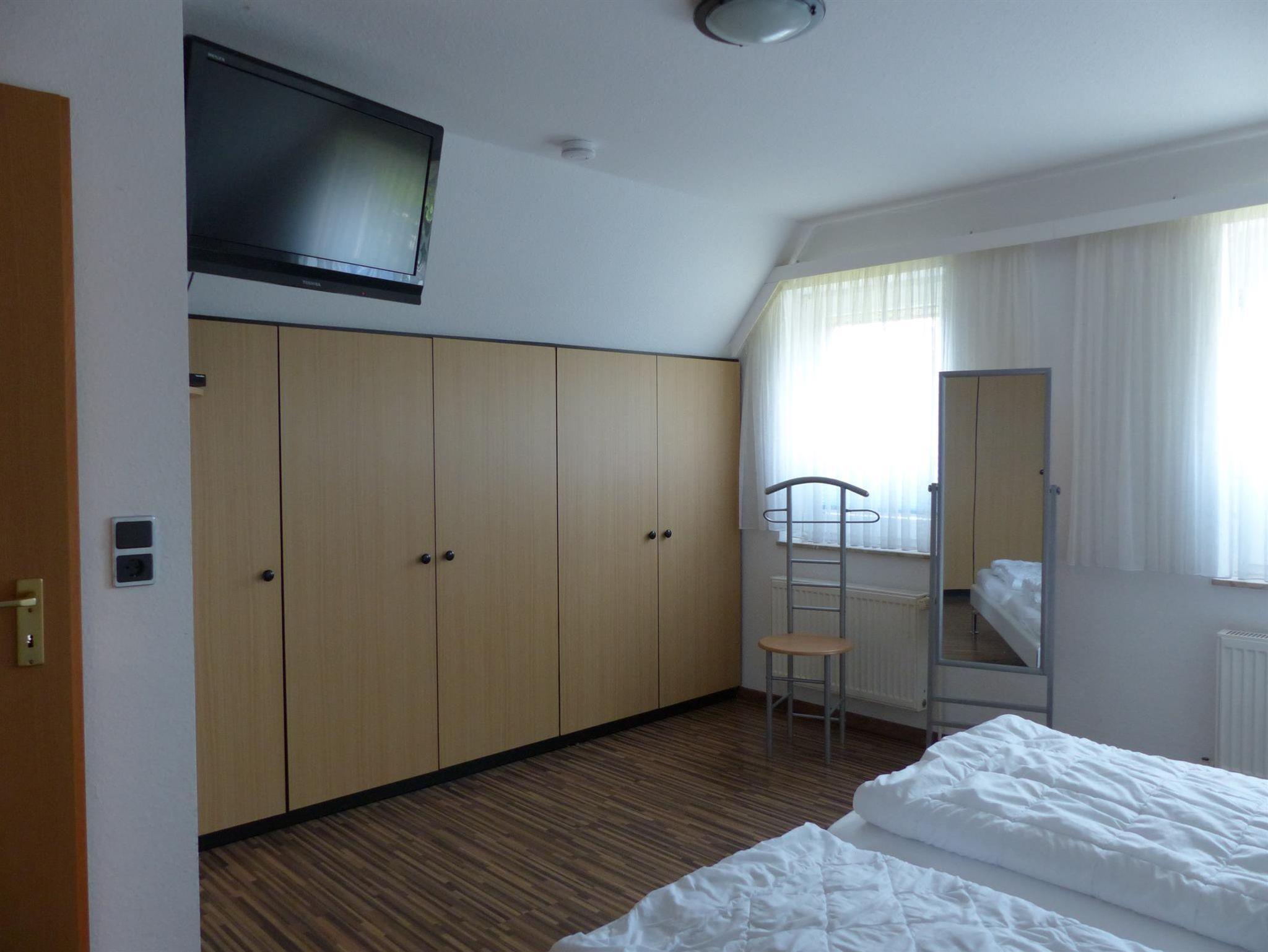 OG: Das Schlafzimmer verfügt über ein Doppelbett und TV,