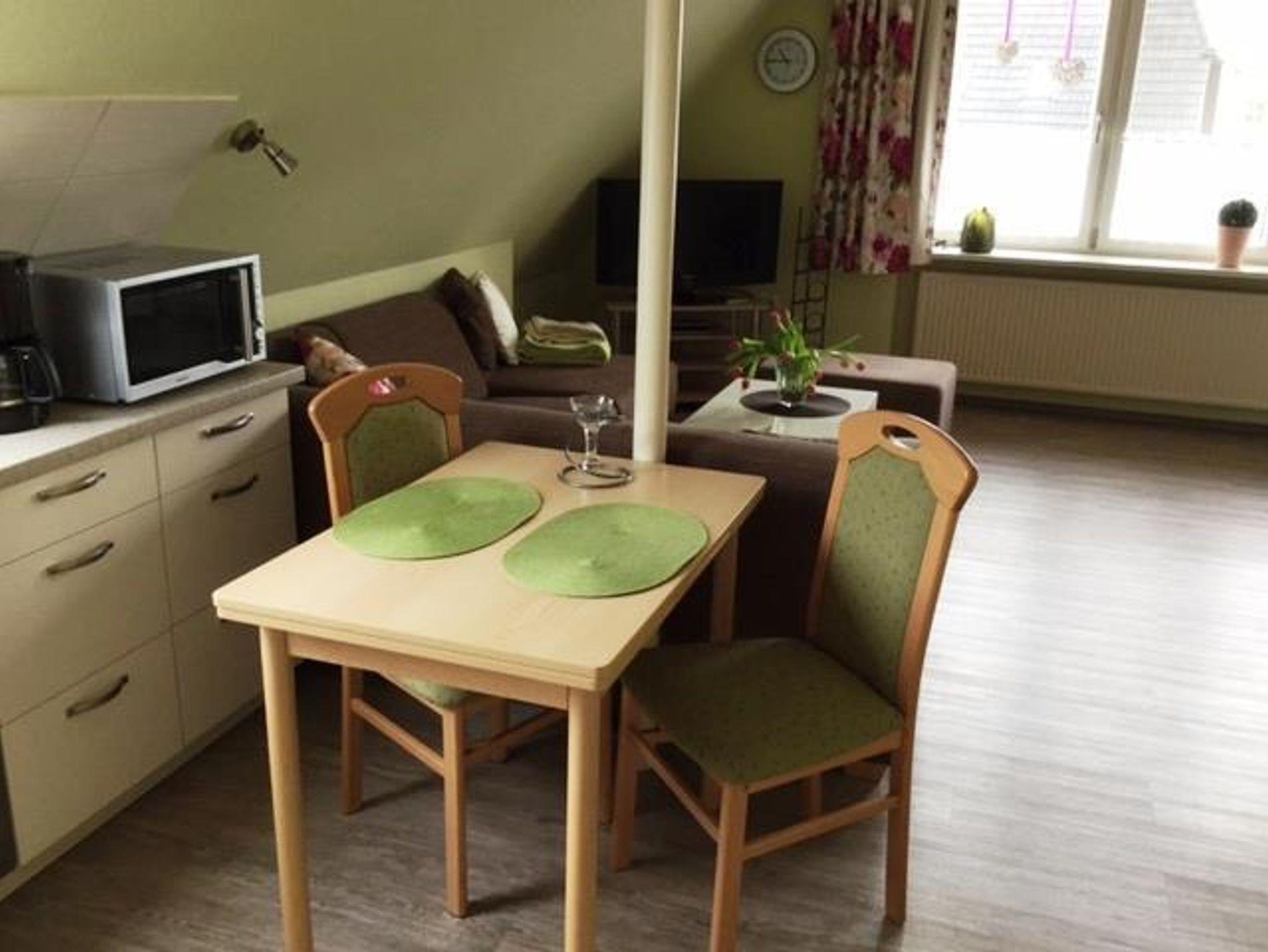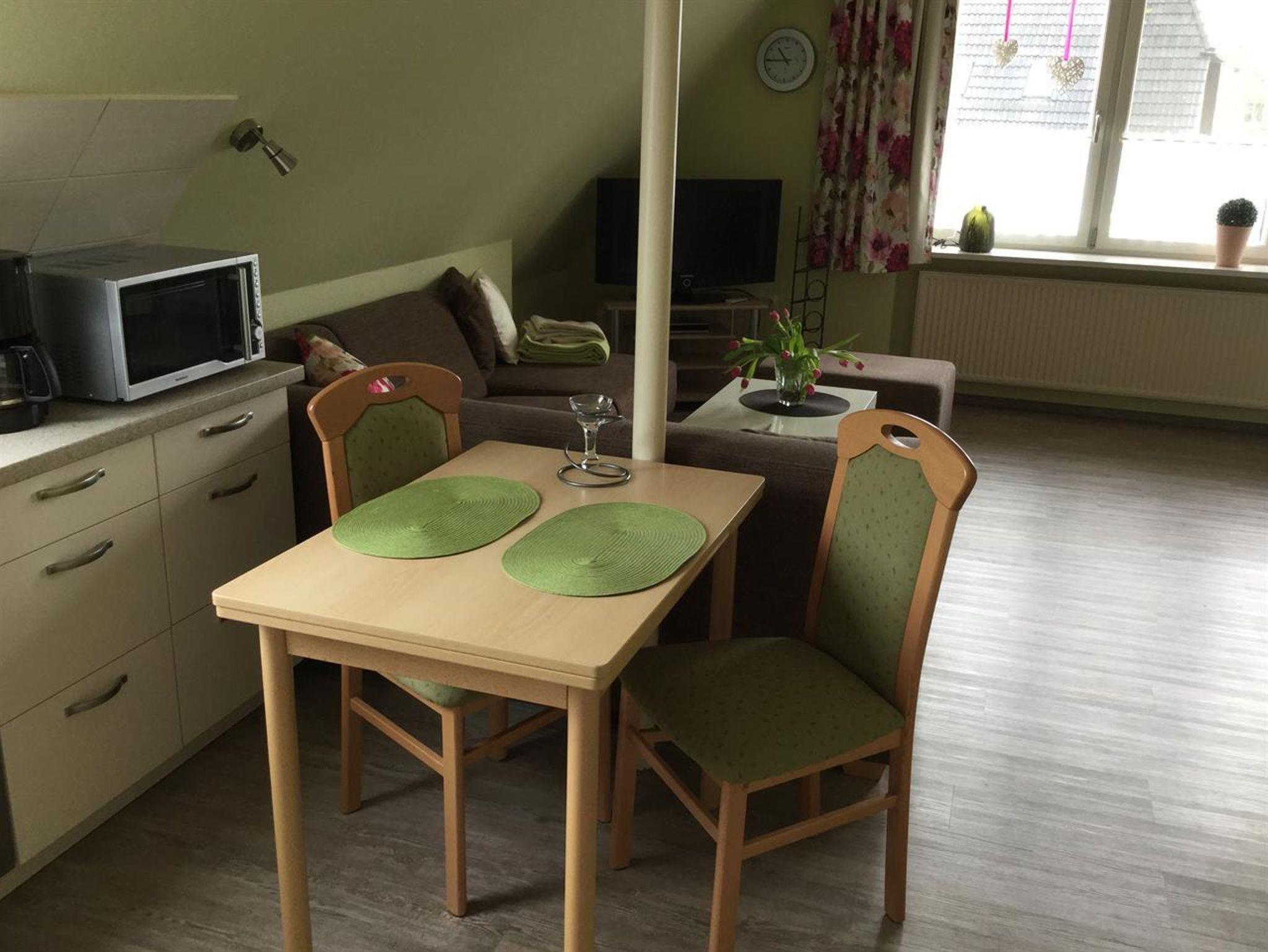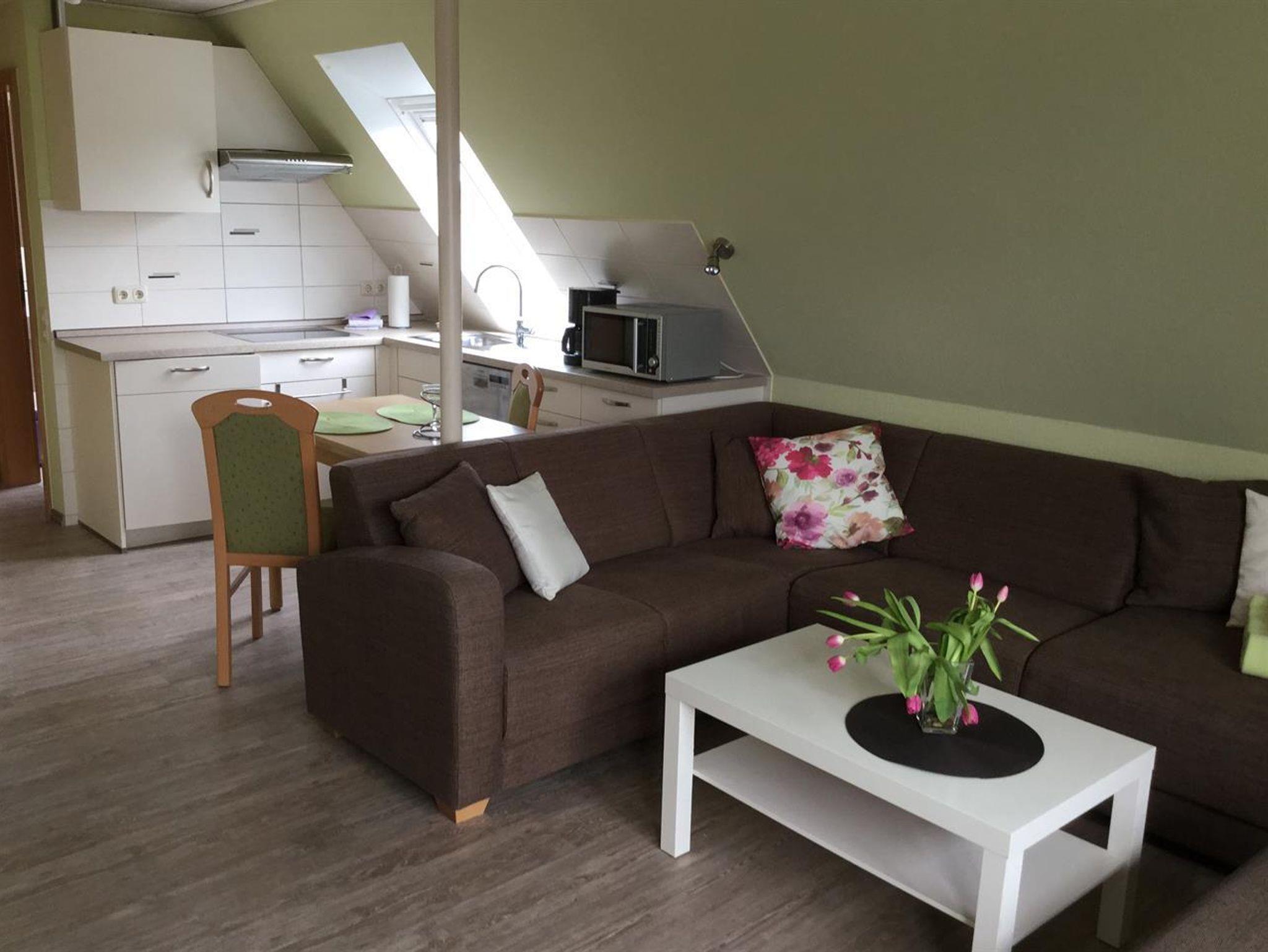 Die Wohnung beträgt ca. 38 m², liegt in der ersten Etage und ist für 1-2 Personen geeignet.