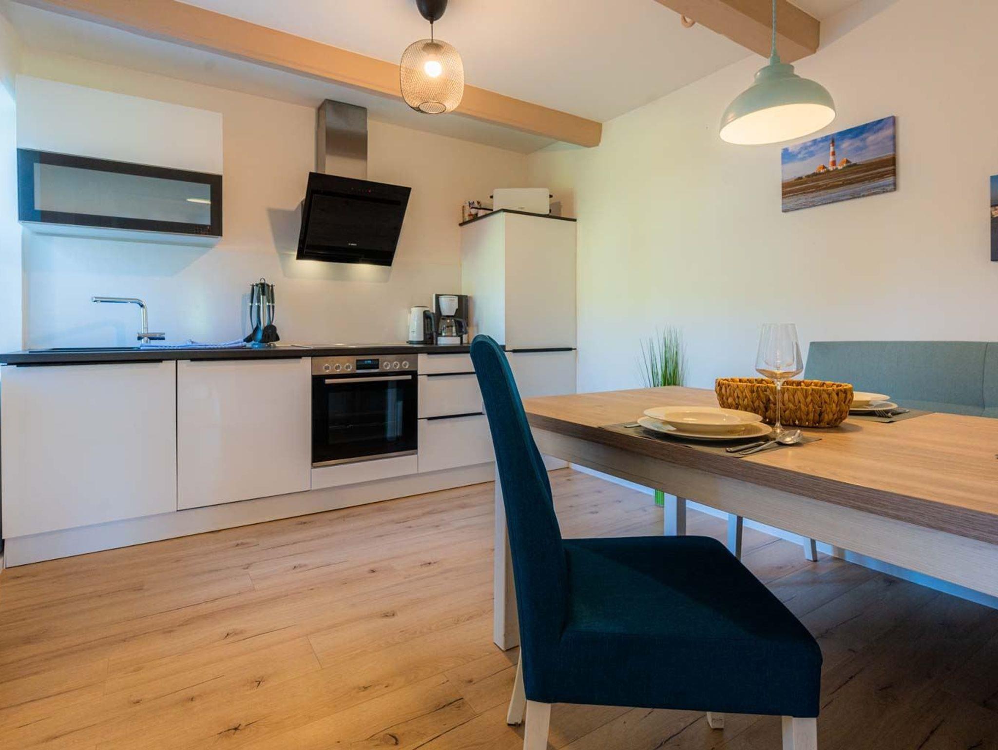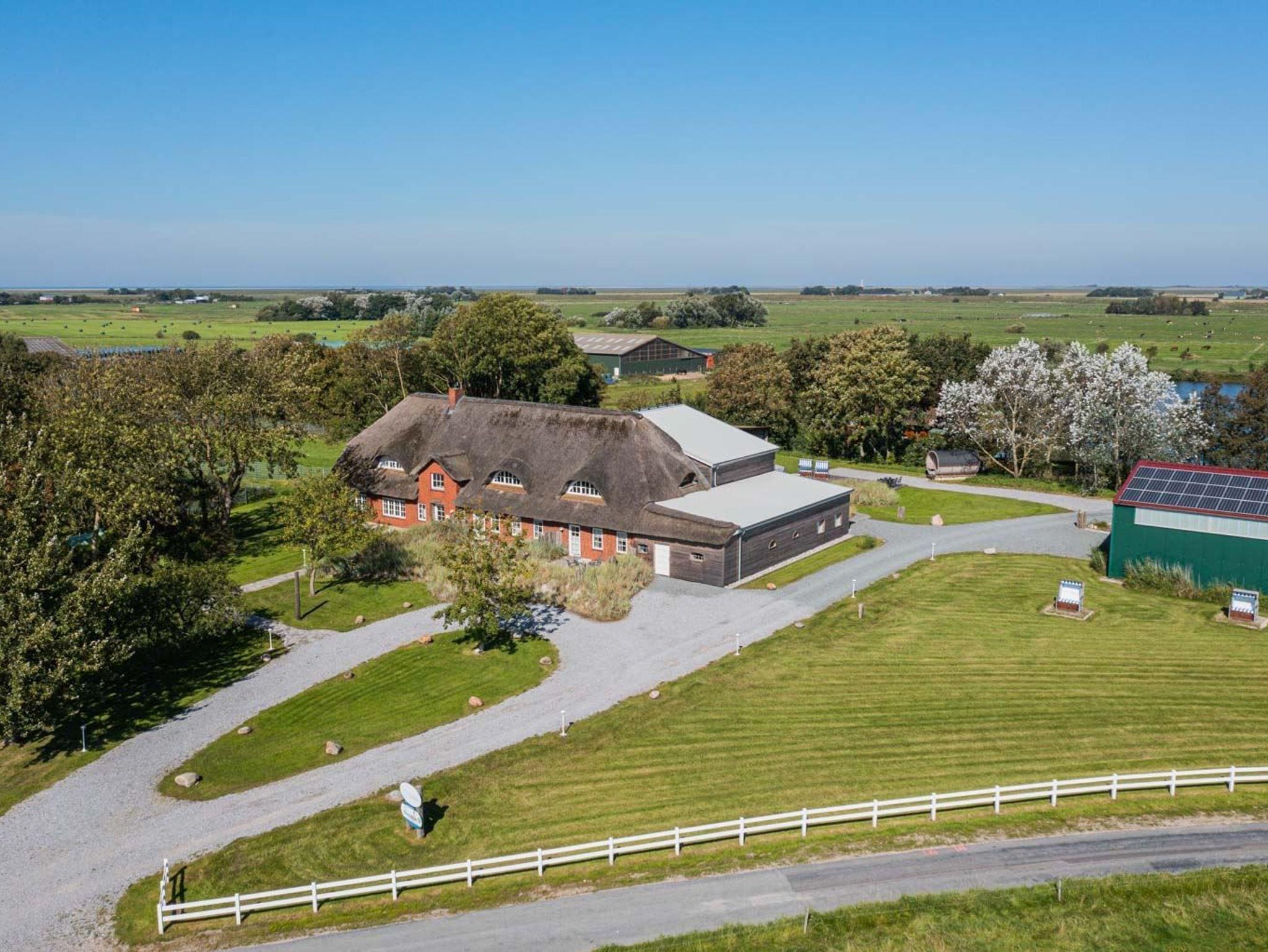 Hochwertig. Naturnah. Hyggelig. Schöne, hochwertig eingerichtete Ferienhausanlage mit ca. 440 m² Wohnfläche auf 2 Ebenen (EG und 1. OG) für bis zu 24 Personen. Landestypisch unter Reet. In ruhiger, naturnaher Lage zwischen St. Peter-Ording und Tating, nur zehn Pkw-Minuten zum Strand und zum Zentrum von St. Peter-Ording. Ideal für einen erholsamen Familienurlaub, Tagungswochenende oder Yoga-Retreat. Dieses Domizil (ID 924) besteht aus sieben Ferienwohnungen (IDs 470 bis 476), die zusammen gebucht werden können. Hunde sind nach Anmeldung herzlich willkommen. Jede Wohnung verfügt über ein eigenes Wohnzimmer und eine Küche. Insgesamt stehen neun Schlafzimmer und sieben Badezimmer zur Verfügung. Jede Wohnung besitzt eine Terrasse, Sonnenfreisitz oder einen Balkon. Strandkörbe sind vorhanden. Im Haus befindet sich ein schöner Gemeinschaftsraum, der auch für Tagungen und Veranstaltungen genutzt werden kann. Auf dem Grundstück ist ein großer eingezäunter Hundeauslauf vorhanden. Ausreichend Pkw-Stellplätze (mit zwei eAuto-Ladestationen, kostenpflichtig), eine überdachte Fahrradabstellmöglichkeit, sowie eine Außensauna (kostenpflichtig, für bis zu 6 Personen) vorhanden. Die Bettwäsche wird gestellt. Handtücher können dazugebucht werden. Rauchen ist nicht erlaubt.